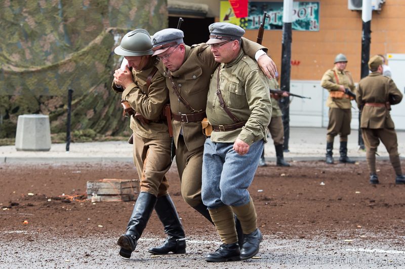 Niedzielna inscenizacja, z efektami pirotechnicznymi i dźwiękowymi, została przygotowana na skrzyżowaniu ulicy Pałacowej i Warszawskiej, które od wczesnego rana było zamknięte dla ruchu. Według scenariusza przygotowanego na podstawie materiałów archiwalnych, maszerująca piechota bolszewicka natknęła się tam na oddział legionistów. Doszło do ostrzału, a potem walki wręcz, również z udziałem cywilów, sprzyjających zarówno Polakom, jak i bolszewikom.