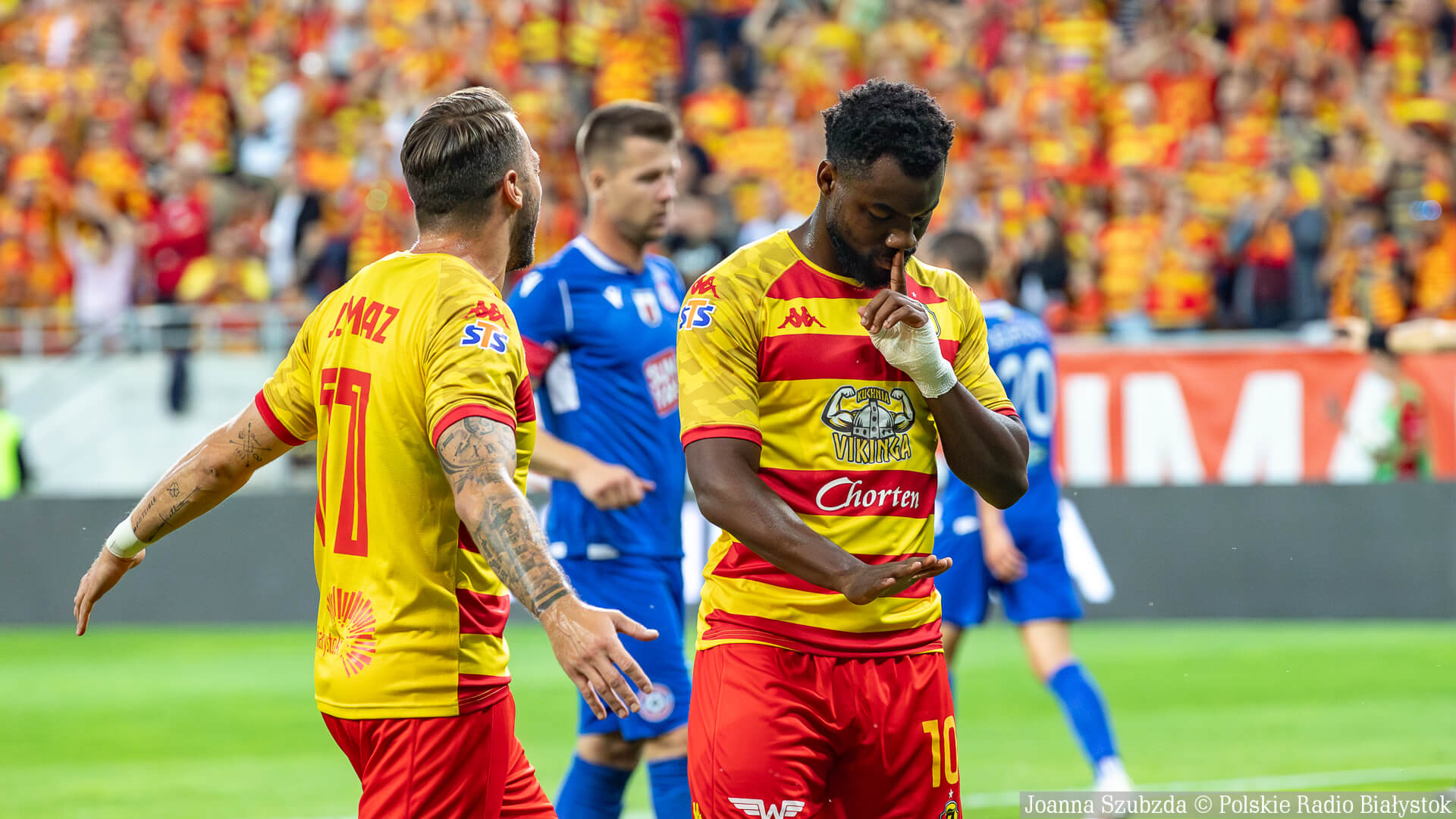 Pochodzący z Angoli napastnik miał też swój udział przy trzecim golu dla Jagiellonii. Z linii końcowej zagrał płaską, mocną piłkę w pole karne litewskiej drużyny, a tam błąd dwóch obrońców zakończył się golem samobójczym Markasa Benety.