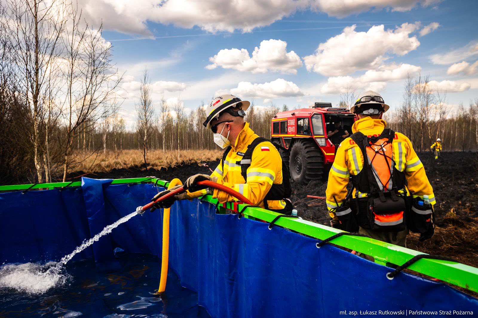 W nocy z poniedziałku na wtorek strażacy przygotowali linię wody o długości około kilometra.