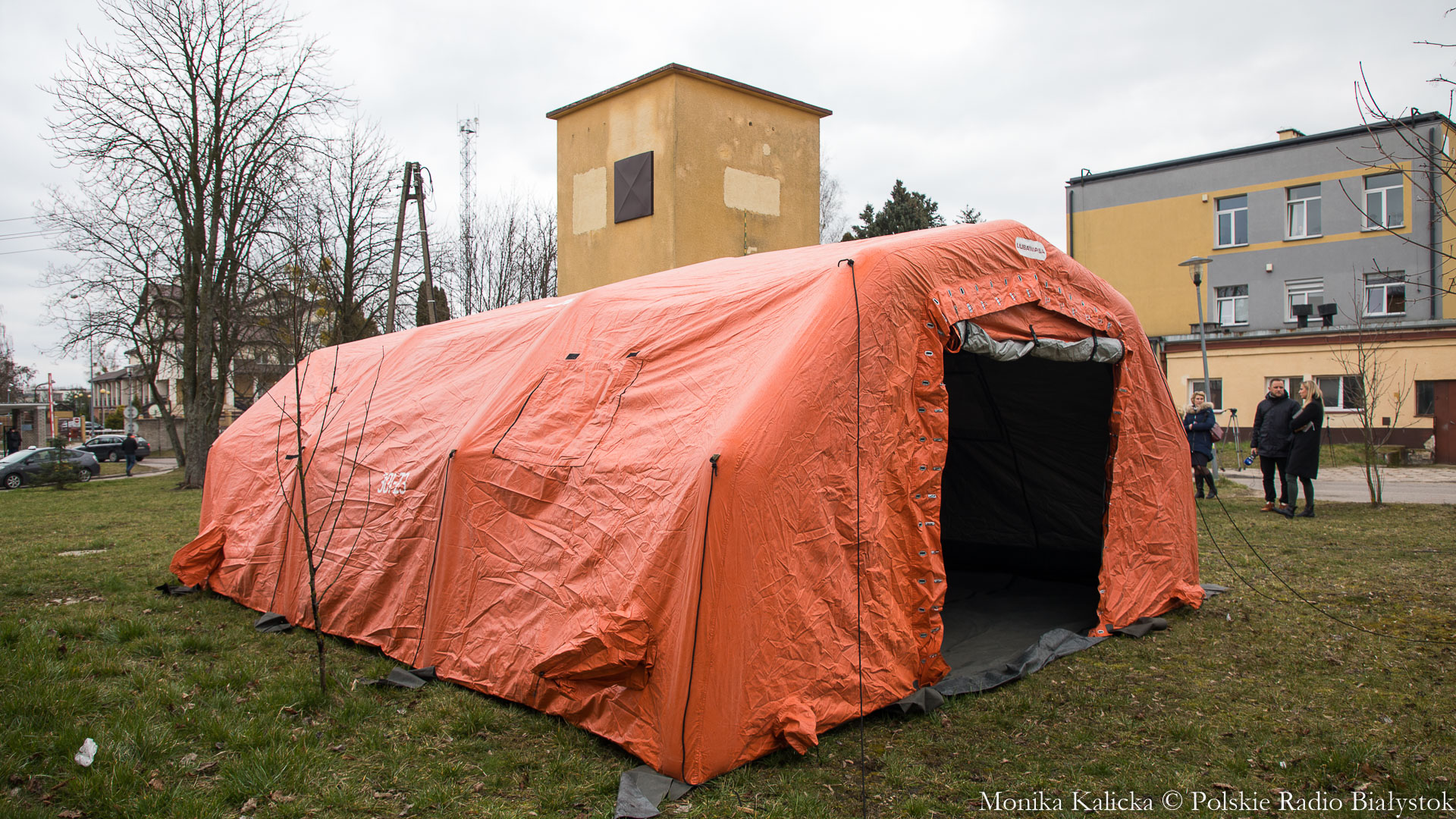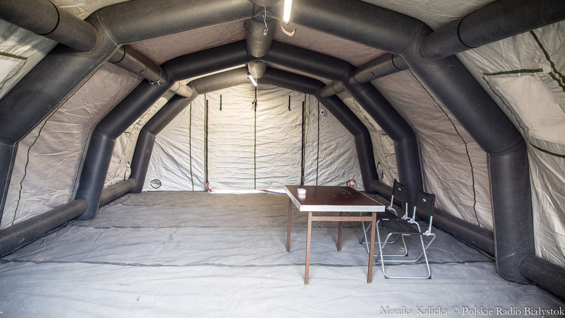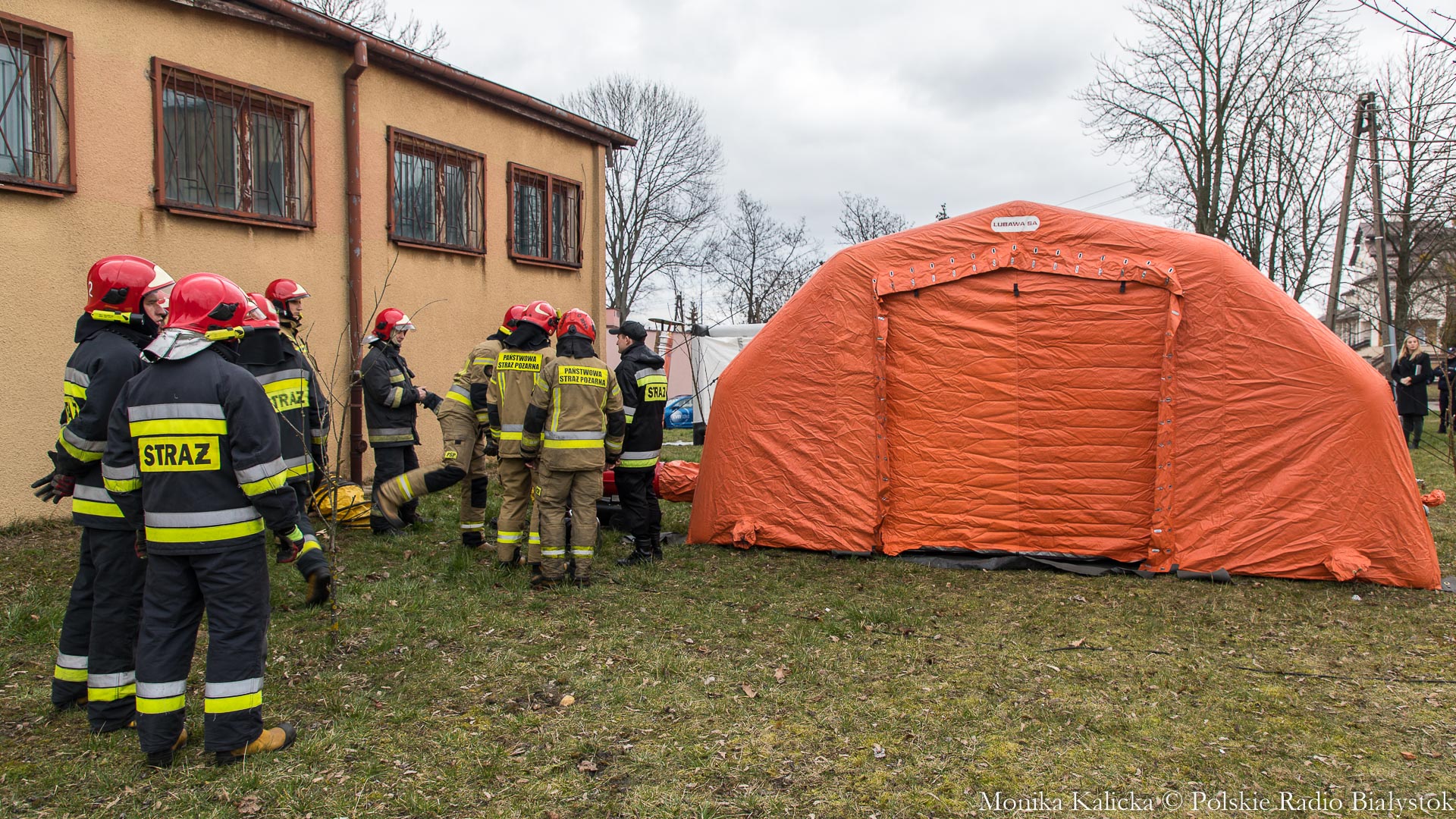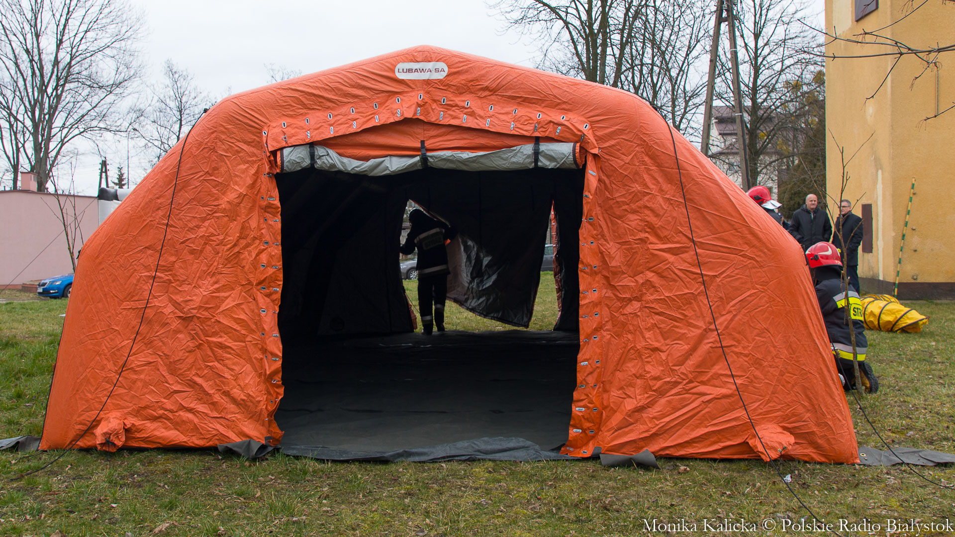 Komendant Wojewódzki Państwowej Straży Pożarnej w Białymstoku Jarosław Wendt wyjaśnił, że ćwiczenia z rozstawianiem pneumatycznego namiotu nie są skomplikowane. Oprócz Białegostoku miały się także odbyć przed szpitalem wojewódzkim w Suwałkach. Wendt dodał, że namiot ma wymagany osprzęt, by mogły w nim pracować zespoły medyczne, jest także ogrzewany. Namioty będą stały do odwołania.