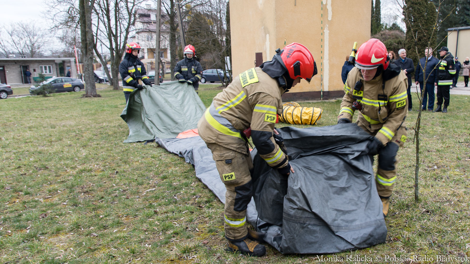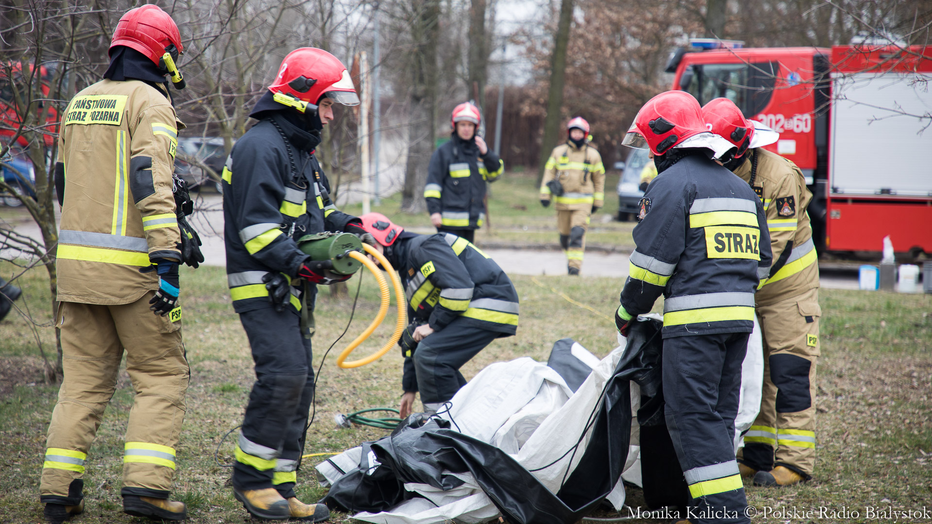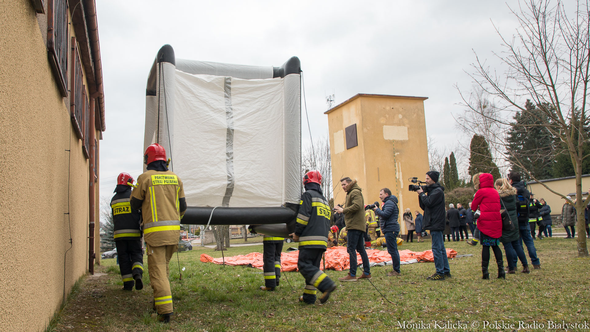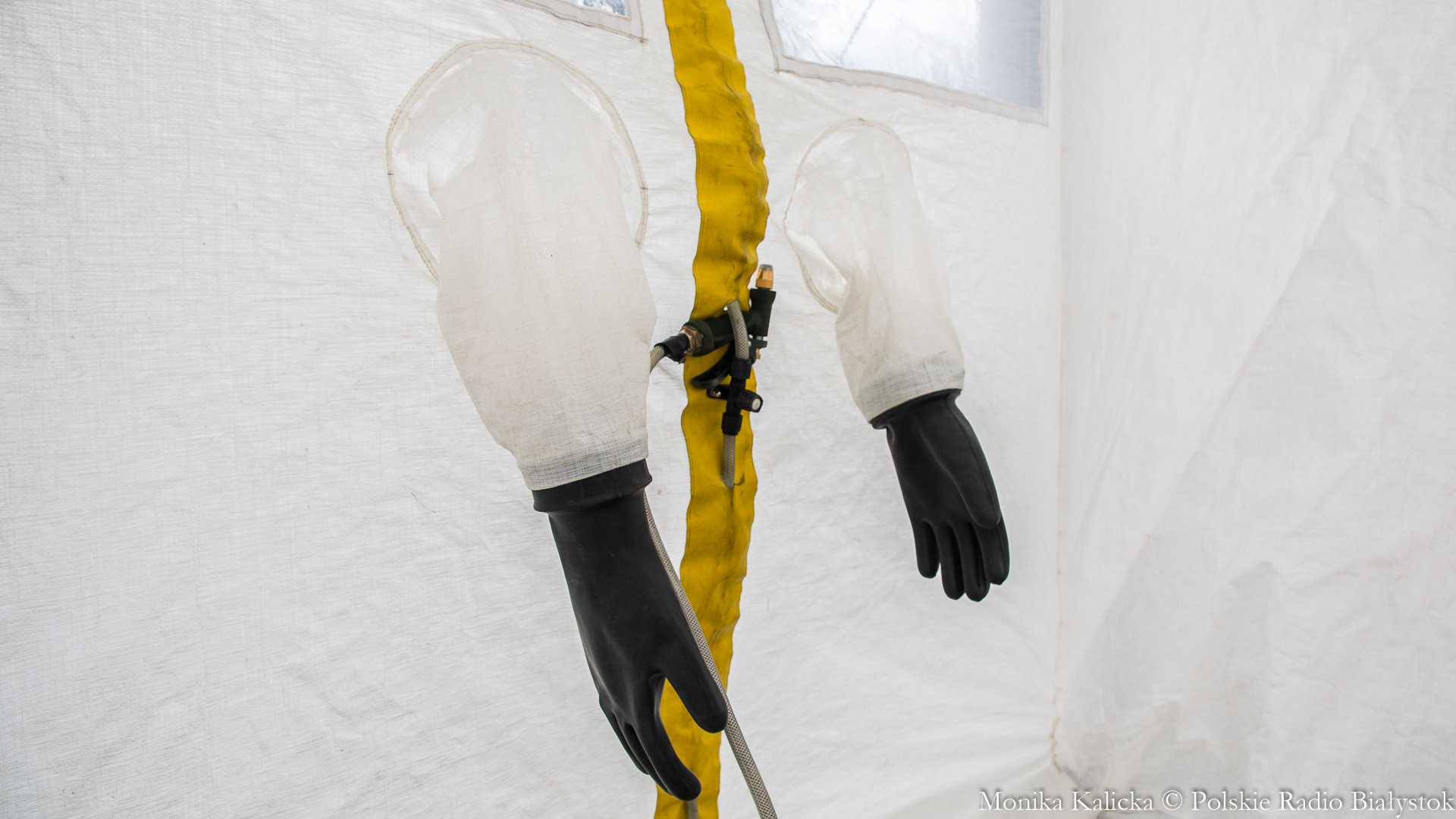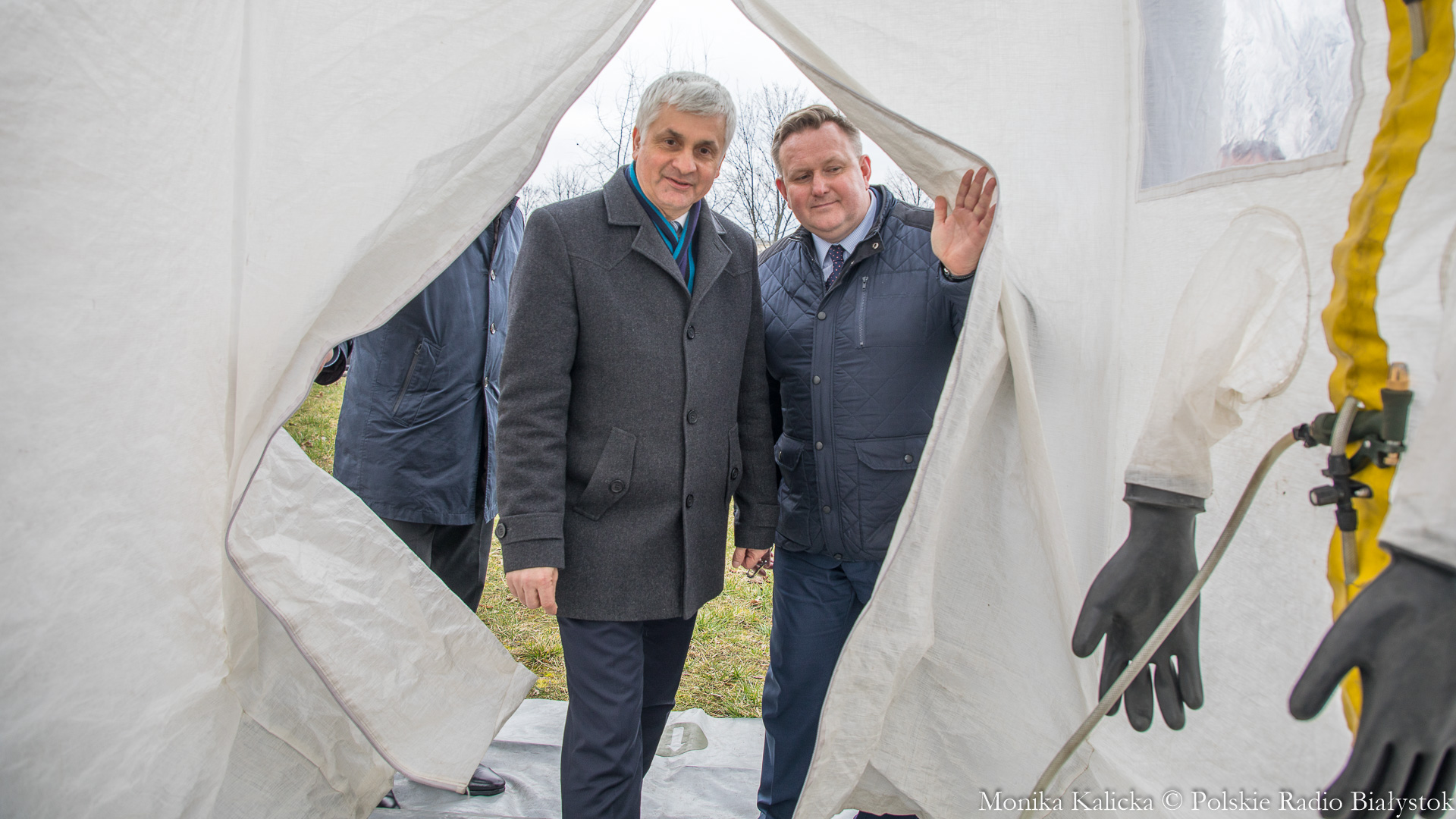 Komendant Wojewódzki Państwowej Straży Pożarnej w Białymstoku Jarosław Wendt wyjaśnił, że ćwiczenia z rozstawianiem pneumatycznego namiotu nie są skomplikowane. Oprócz Białegostoku miały się także odbyć przed szpitalem wojewódzkim w Suwałkach. Wendt dodał, że namiot ma wymagany osprzęt, by mogły w nim pracować zespoły medyczne, jest także ogrzewany. Namioty będą stały do odwołania.