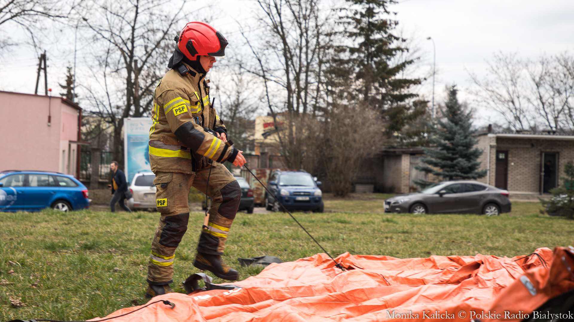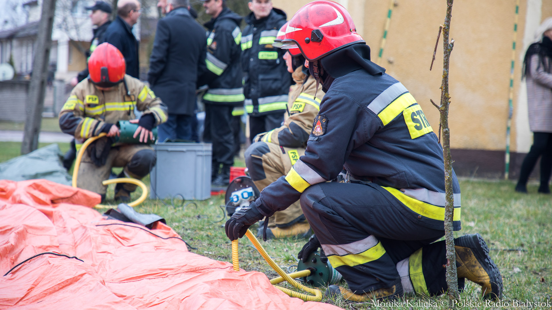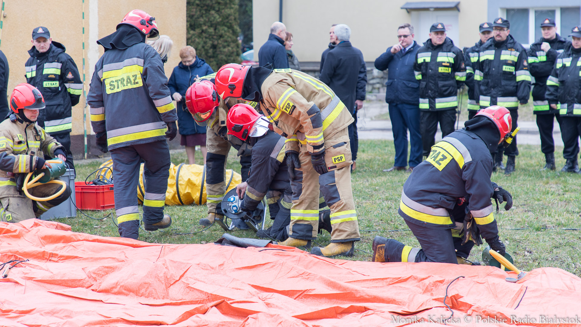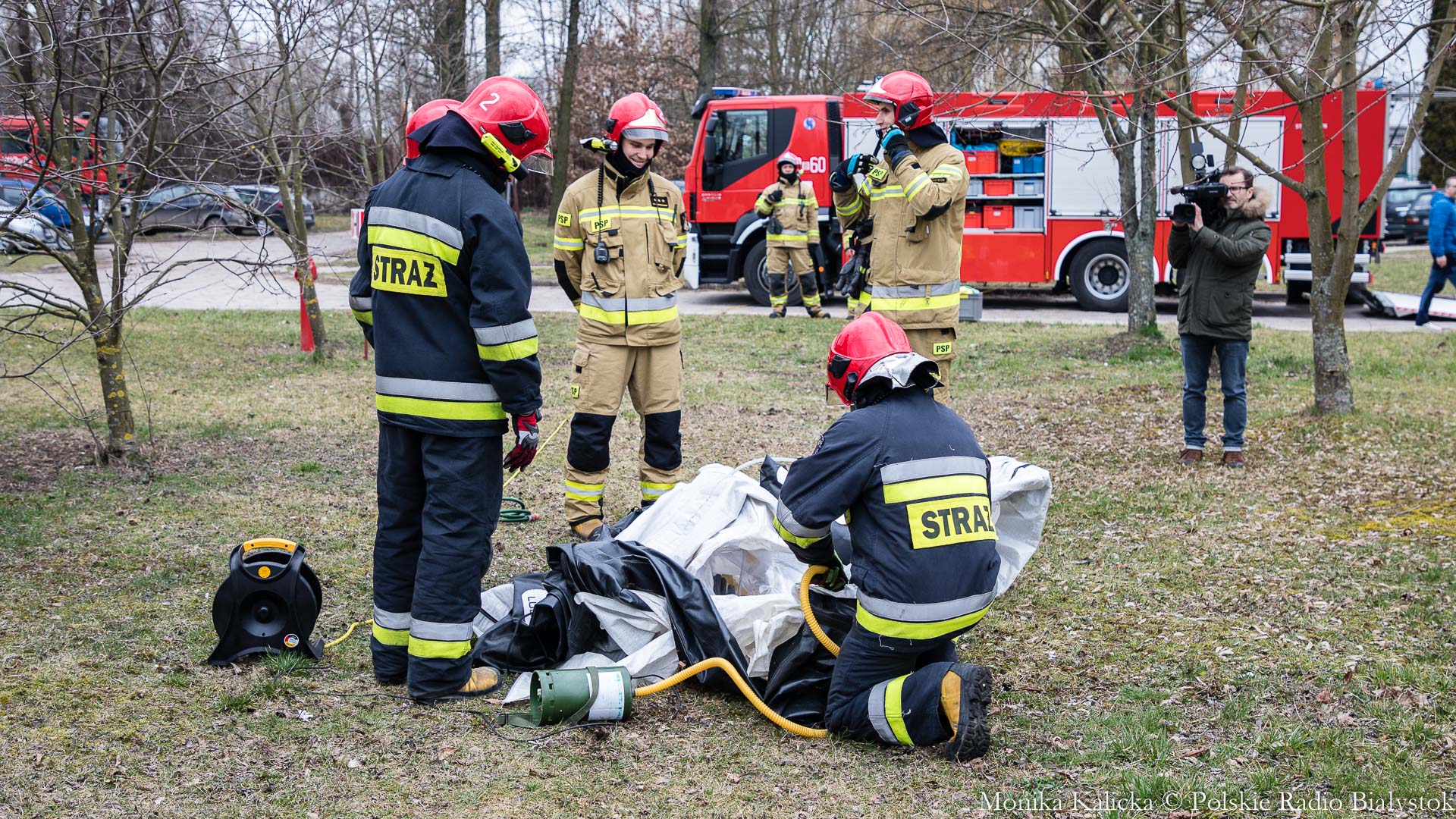 Komendant Wojewódzki Państwowej Straży Pożarnej w Białymstoku Jarosław Wendt wyjaśnił, że ćwiczenia z rozstawianiem pneumatycznego namiotu nie są skomplikowane. Oprócz Białegostoku miały się także odbyć przed szpitalem wojewódzkim w Suwałkach. Wendt dodał, że namiot ma wymagany osprzęt, by mogły w nim pracować zespoły medyczne, jest także ogrzewany. Namioty będą stały do odwołania.