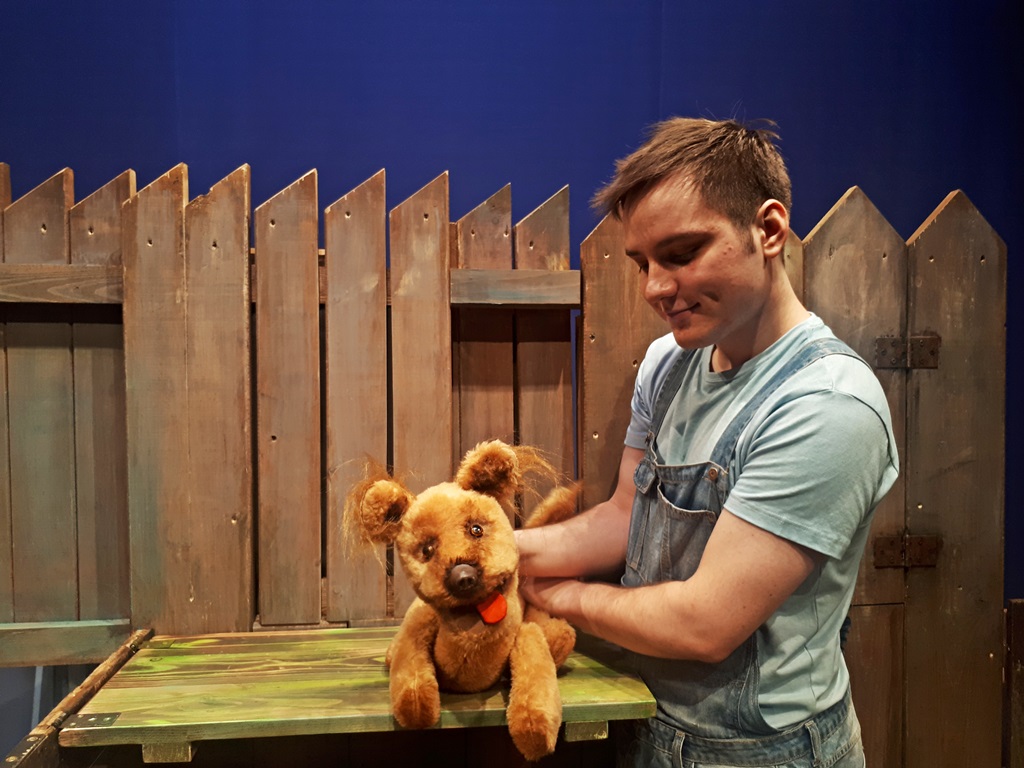 W roli psa Karmelka zobaczymy studenta Akademii Teatralnej Macieja Zalewskiego. "Karmelek" to spektakl zrealizowany w ramach BTL Scena Propozycji i BTL Debiut, we współpracy z Akademią Teatralną.