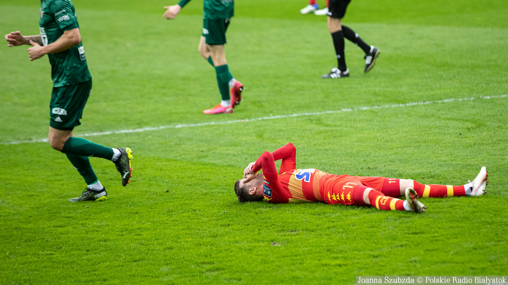 Ostatnie 10 min. meczu Jagiellonia Białystok grała w osłabieniu po drugiej żółtej kartce i w konsekwencji czerwonej dla Macieja Makuszewskiego.