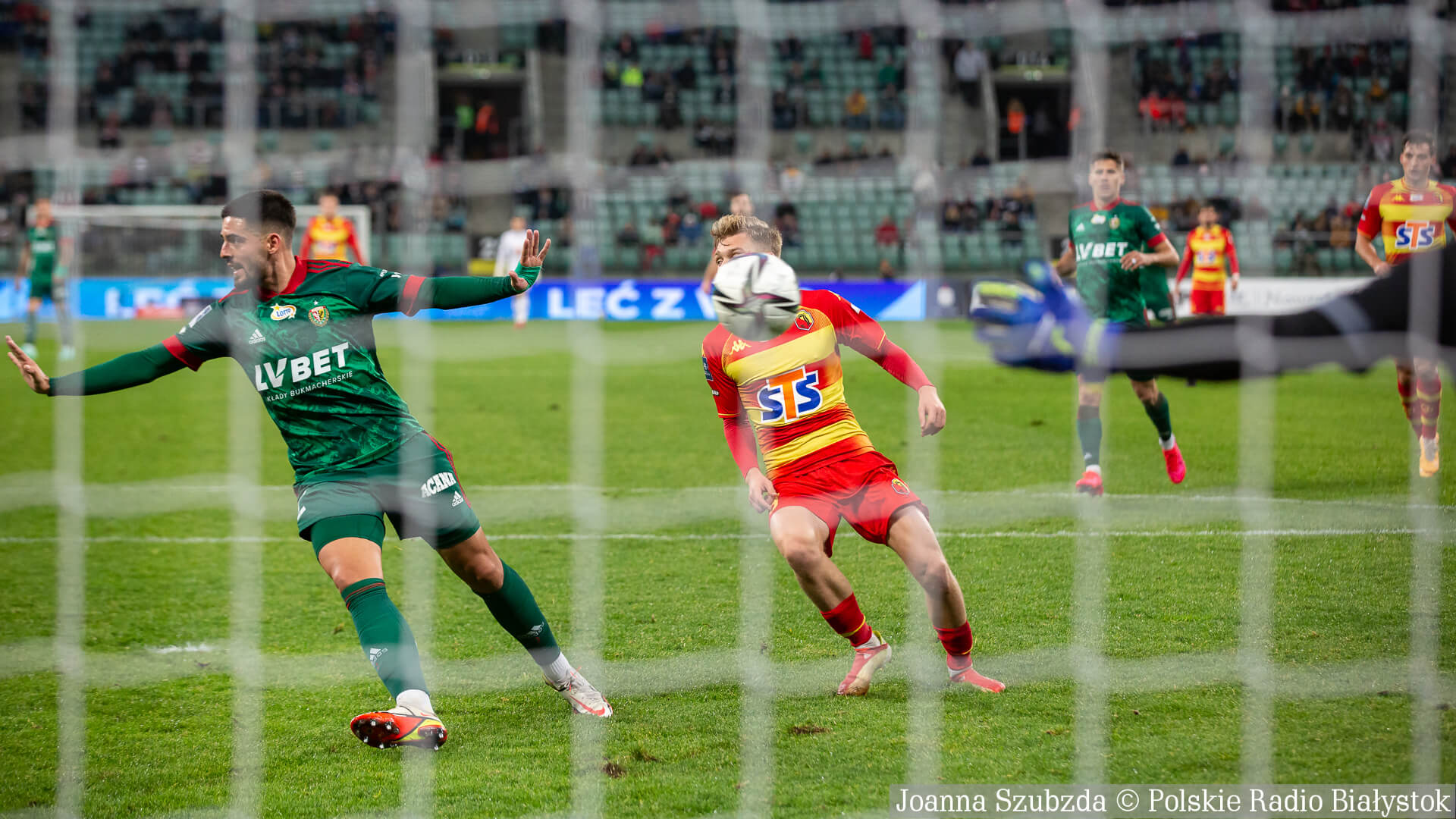 Kilka minut później Jaga miała dwie kolejne bardzo dobre sytuacje. Najpierw piłkę głową uderzał Bartosz Kwiecień, ale niecelnie, a później piłka odbiła się od słupka po uderzeniu Nasticia.
