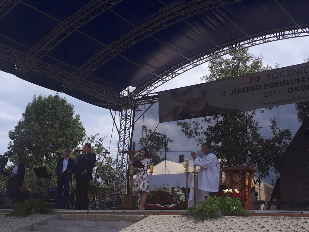 11:30 Scena i ołtarz polowy przed domem rodzinnym ks. Jerzego. Wystąpienia oficjalne.