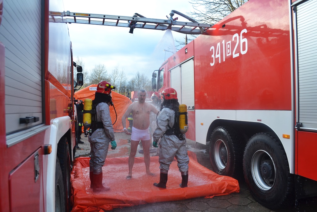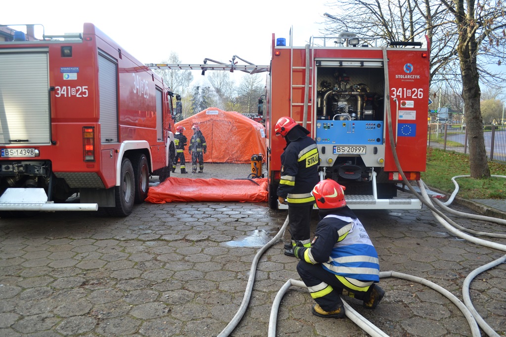Jak ratować osoby zatrute chemikaliami – ćwiczyli w Suwałkach strażacy i ratownicy medyczni, fot. Marcin Kapuściński