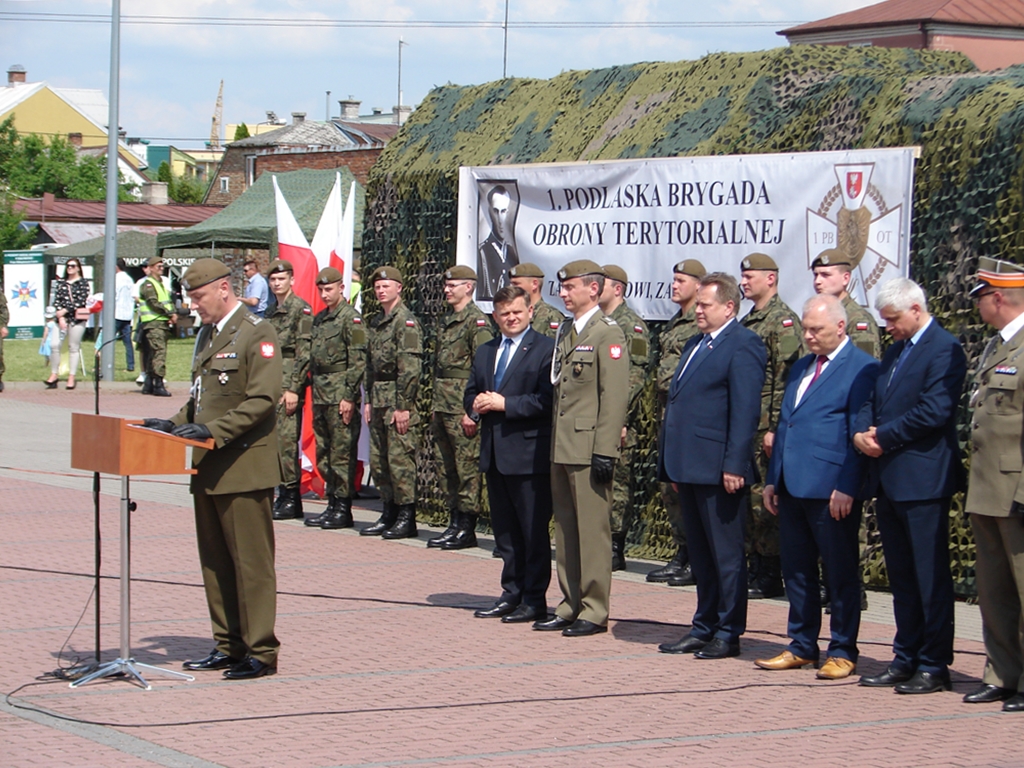 Dowódca 1. Podlaskiej Brygady Obrony Terytorialnej płk Sławomir Kocanowski poinformował, że w sobotę w dwóch przysięgach: w Wysokiem Mazowieckim i po południu w Zambrowie ślubowanie na rzecz służby Polsce złożyło ponad dwustu terytorialsów, którzy zakończyli podstawowe szkolenie. Mówił, że żołnierze "dają wyraz nowoczesnego patriotyzmu łącząc pracę i życie osobiste ze służbą wojskową".