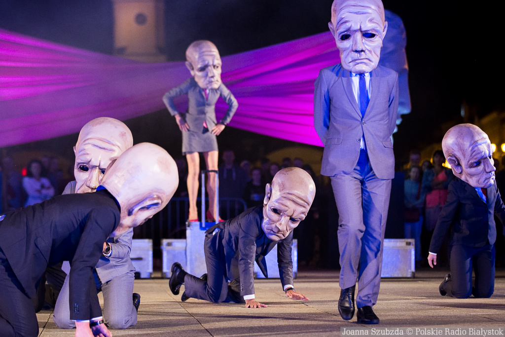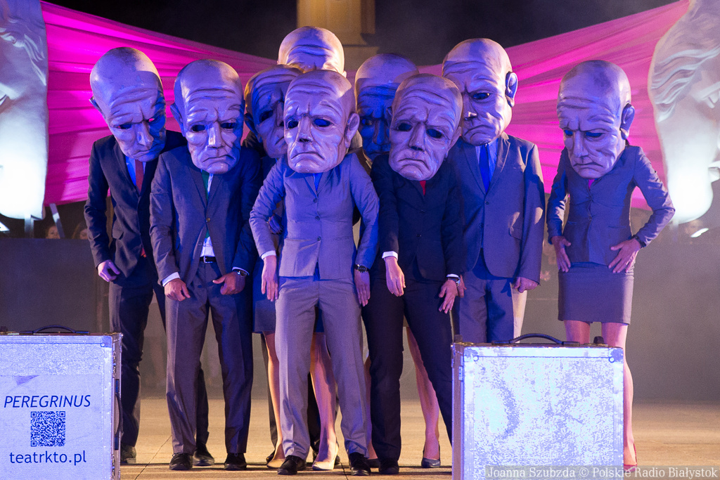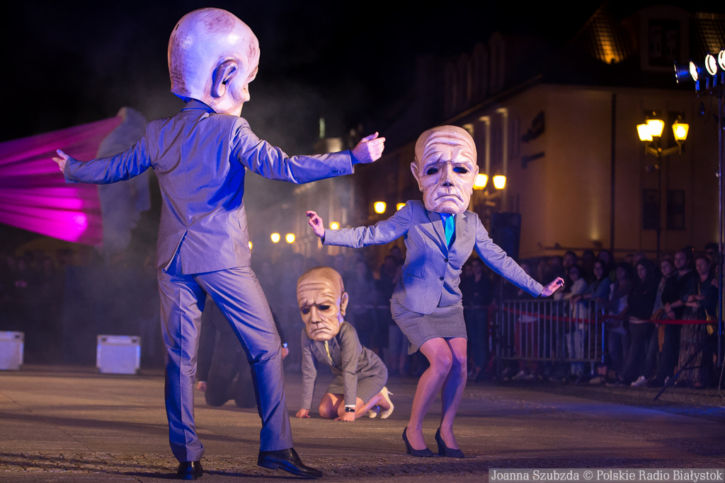 W sobotę w centrum Białegostoku Teatr KTO przedstawił groteskowy moralitet. Aktorzy w wielkich maskach budują szereg z pozoru zabawnych scen, będących w istocie gorzką satyrą na świat współczesnego Everymana, zawieszony pomiędzy domem a korporacją.