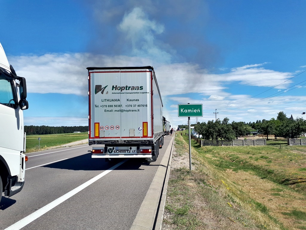 Pożar tira w Kamieniu niedaleko Sztabina, fot. Kamil Kalicki