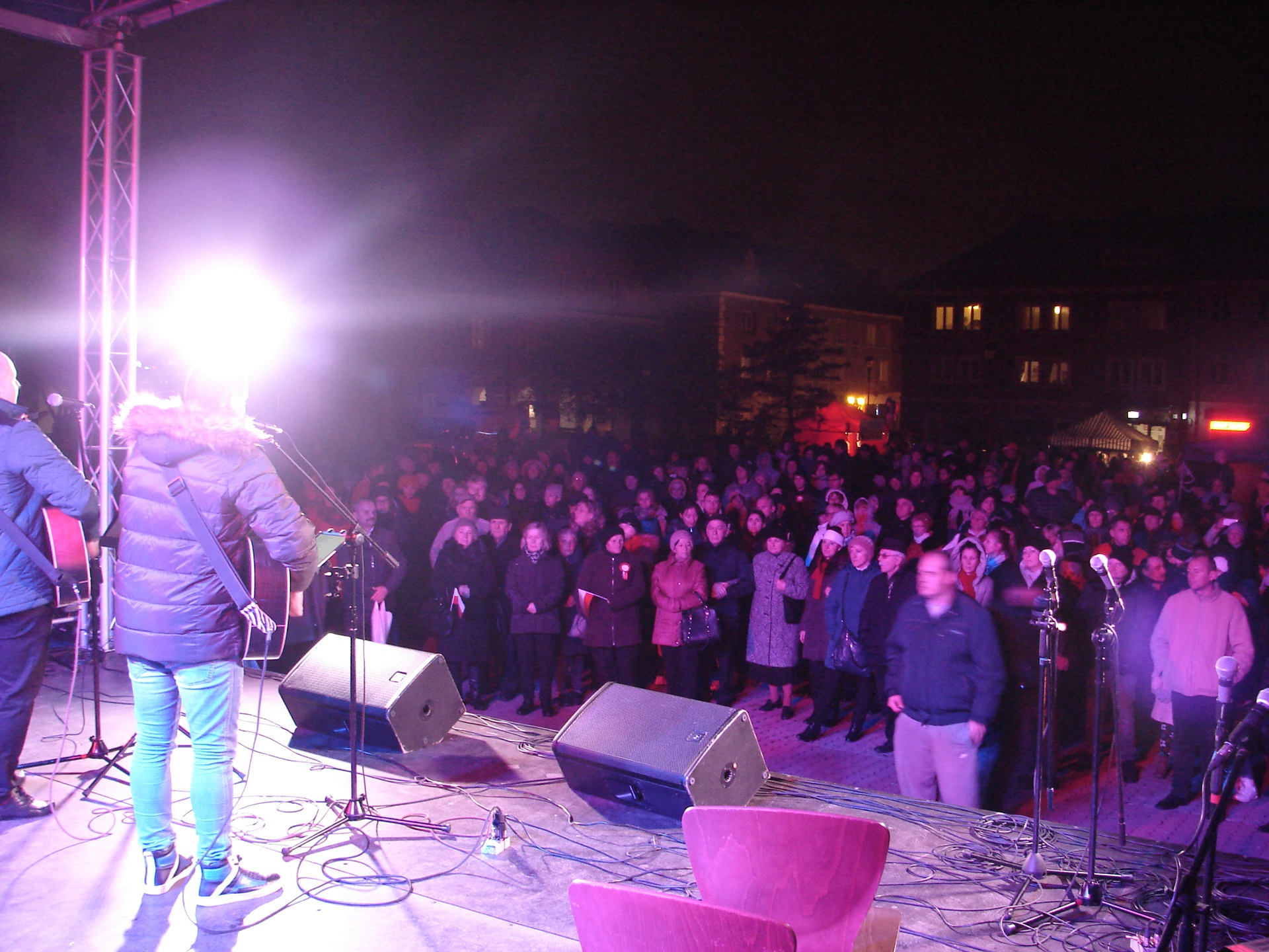 Kilkugodzinny piknik rodzinny na Starym Rynku zakończył obchody 100. rocznicy odzyskania niepodległości w Łomży. Wypełniająca plac przed ratuszem publiczność, wspólnie z wykonawcami śpiewała piosenki patriotyczne, a następnie oglądała videomapping na ścianie frontowej ratusza. Prezentowane kadry i animacje, uzupełnione komentarzem lektora, dotyczyły łomżyńskiej drogi do niepodległości.