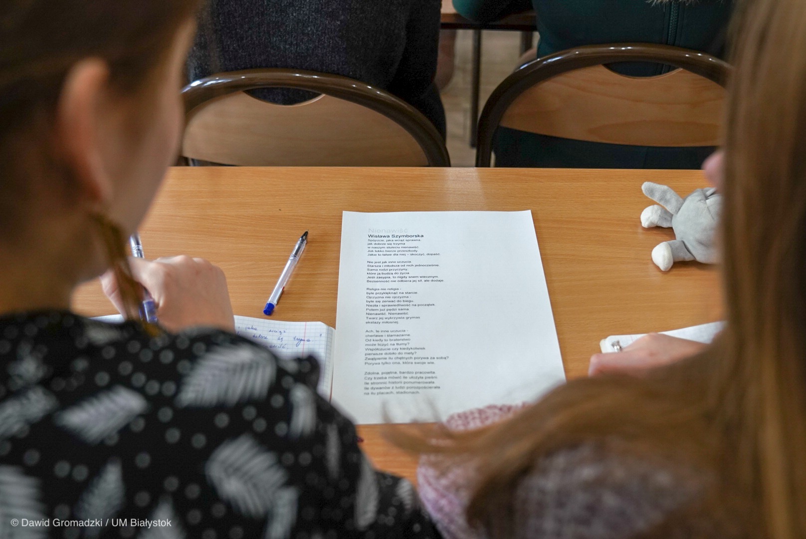 Punktem wyjścia do rozważań podczas specjalnej lekcji przeprowadzonej w drugiej klasie I LO w Białymstoku był wiersz Wisławy Szymborskiej pt.: „Nienawiść”. O tym, jak przeciwdziałać i reagować na mowę nienawiści oraz hejt w przestrzeni publicznej, dyskutowali uczniowie. Zuzanna, która od wielu lat związana jest z Wielką Orkiestrą Świątecznej Pomocy, podkreślała, jak bardzo to tragiczne wydarzenie ją poruszyło. Uczniowie zwracali też uwagę na to, jak ważna jest rola organów państwa, które odpowiedzialne są za ściganie i karanie za mowę nienawiści.