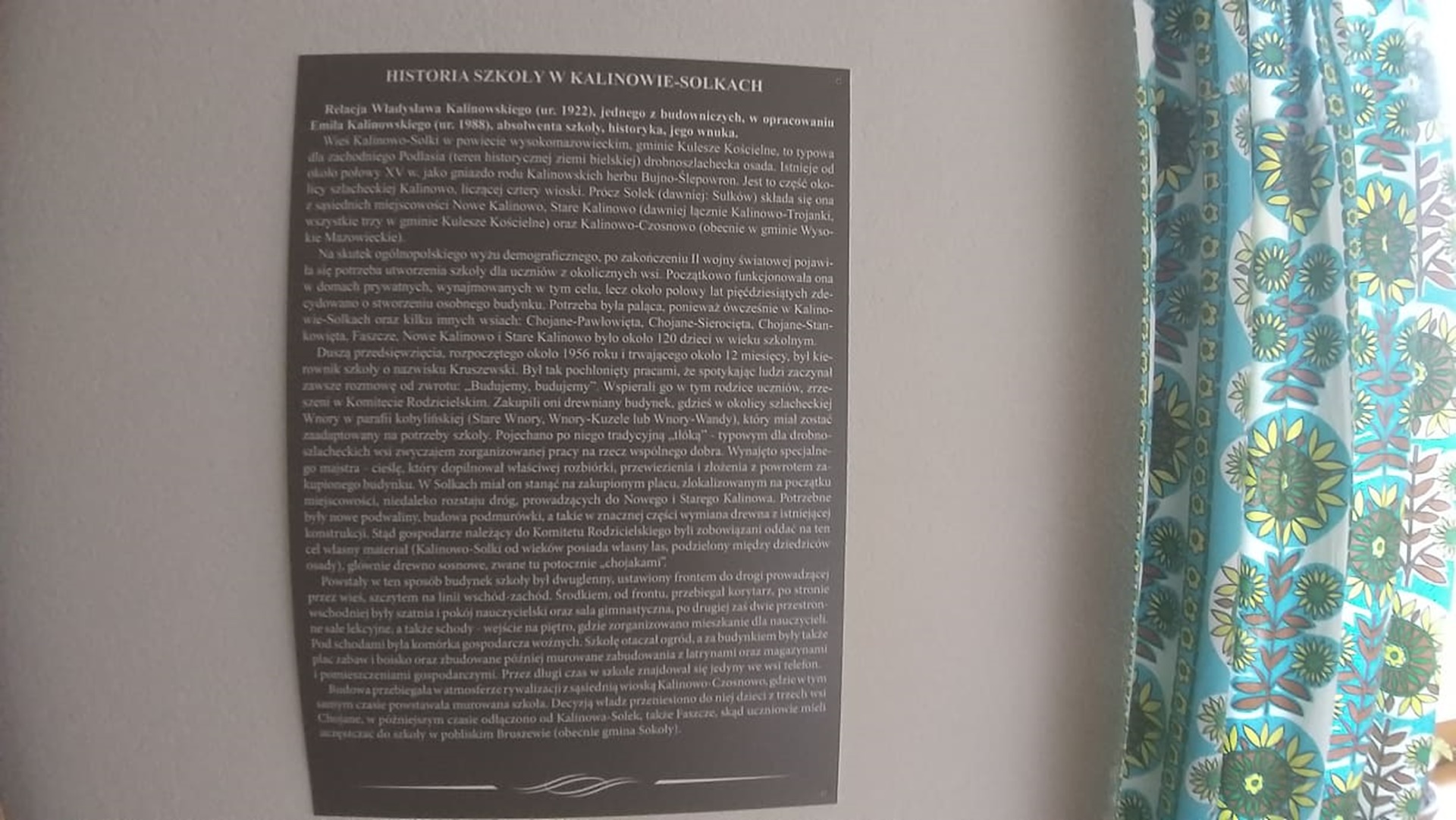 Znajdziemy w niej m.in. dokumenty ze szkoły w Kalinowie Solkach. Zobaczymy stare dzienniki, zeszyty, czy świadectwa mieszkańców gminy Kulesze Kościelne, którzy uczęszczali do tej podstawówki.