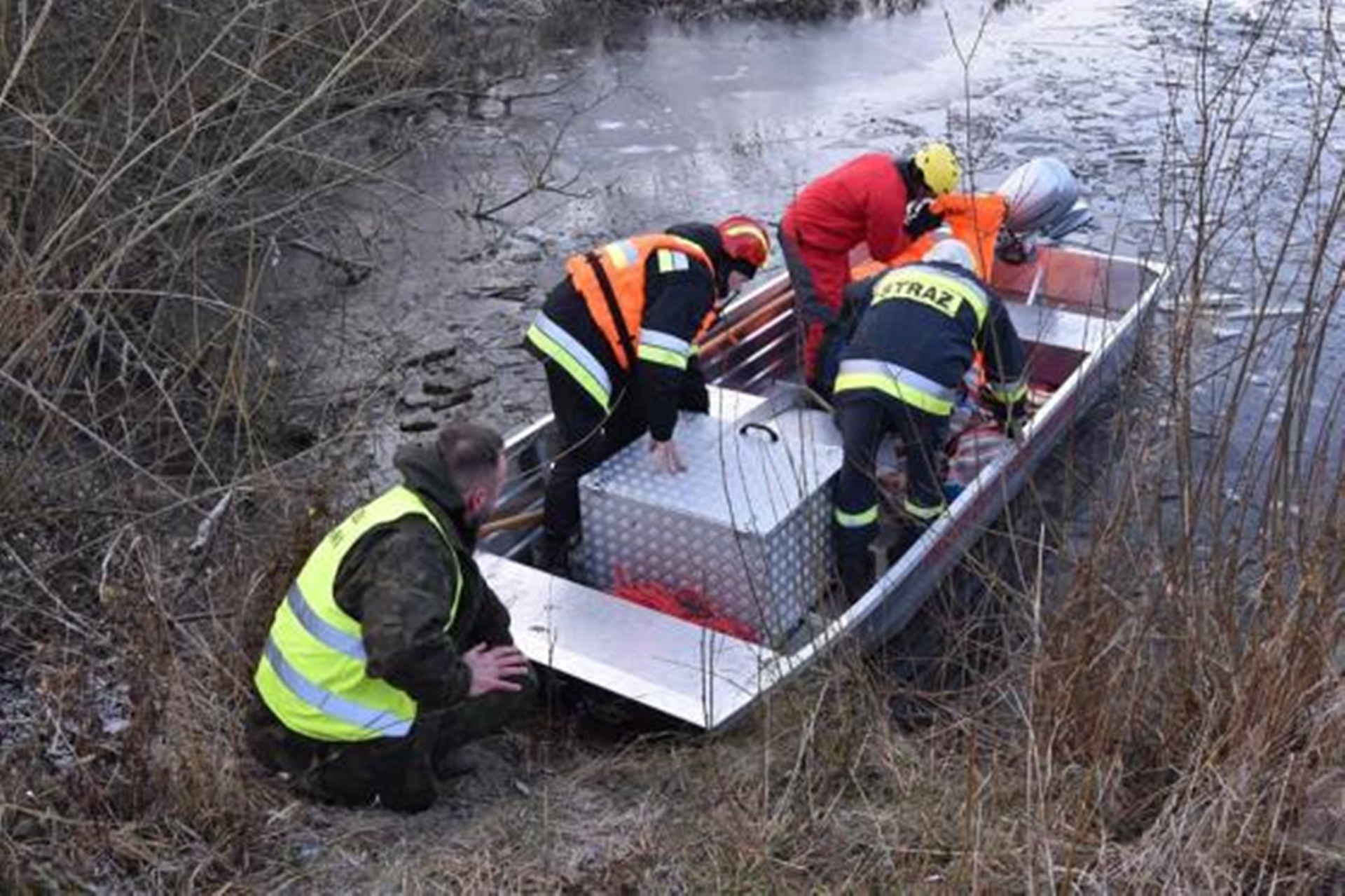 Patrol straży granicznej dostrzegł w zbiorniku wodnym uwięzione zwierzę. Funkcjonariusze powiadomili strażaków i leśników.