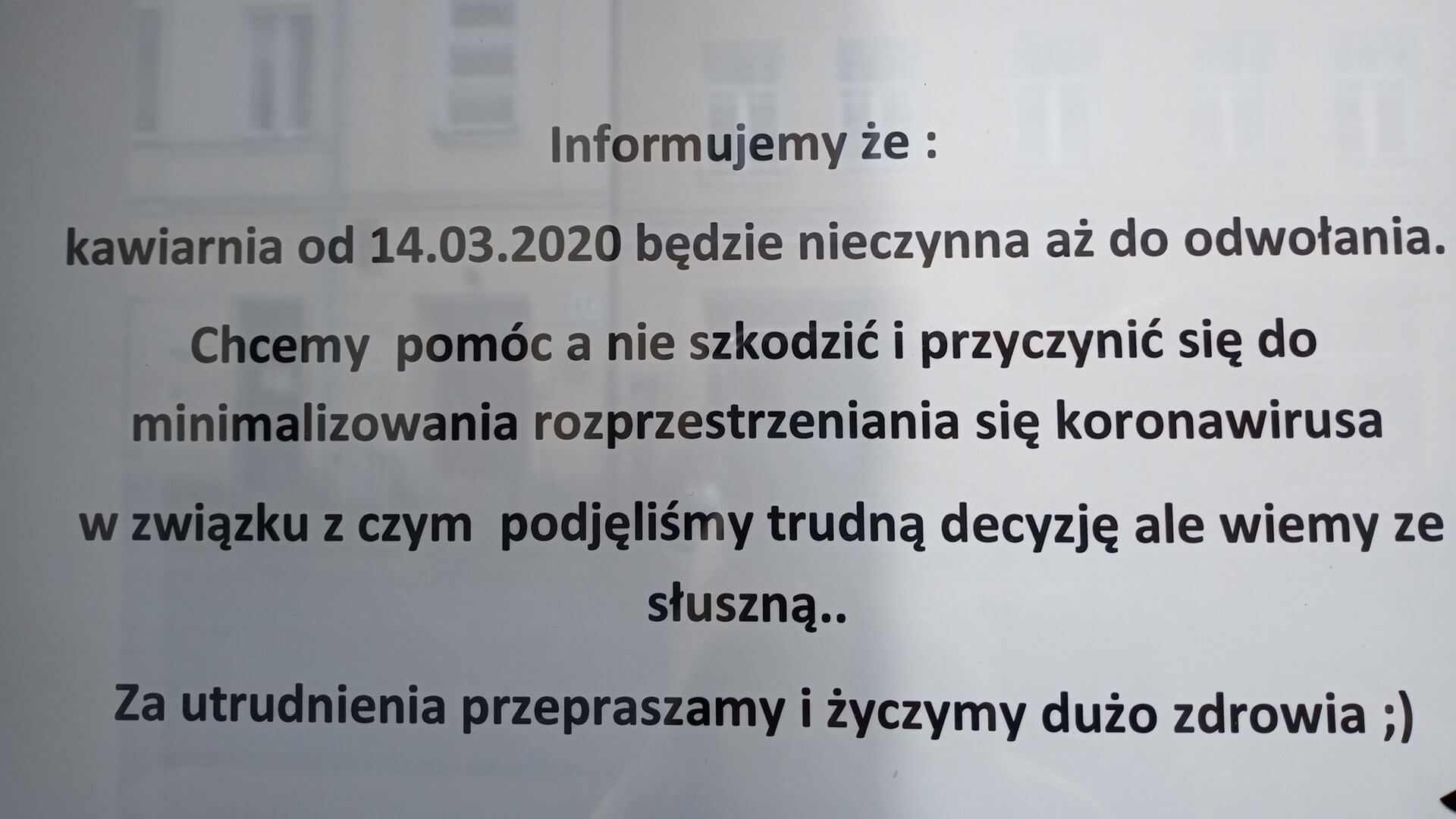 Stosując się do rozporządzeń rządu, właściciele punktów gastronomicznych na drzwiach wywiesili informacje m.in. o opcji realizacji zamówień z dowozem do domu. Poinformowali również swoich klientów o zmianach poprzez media społecznościowe.