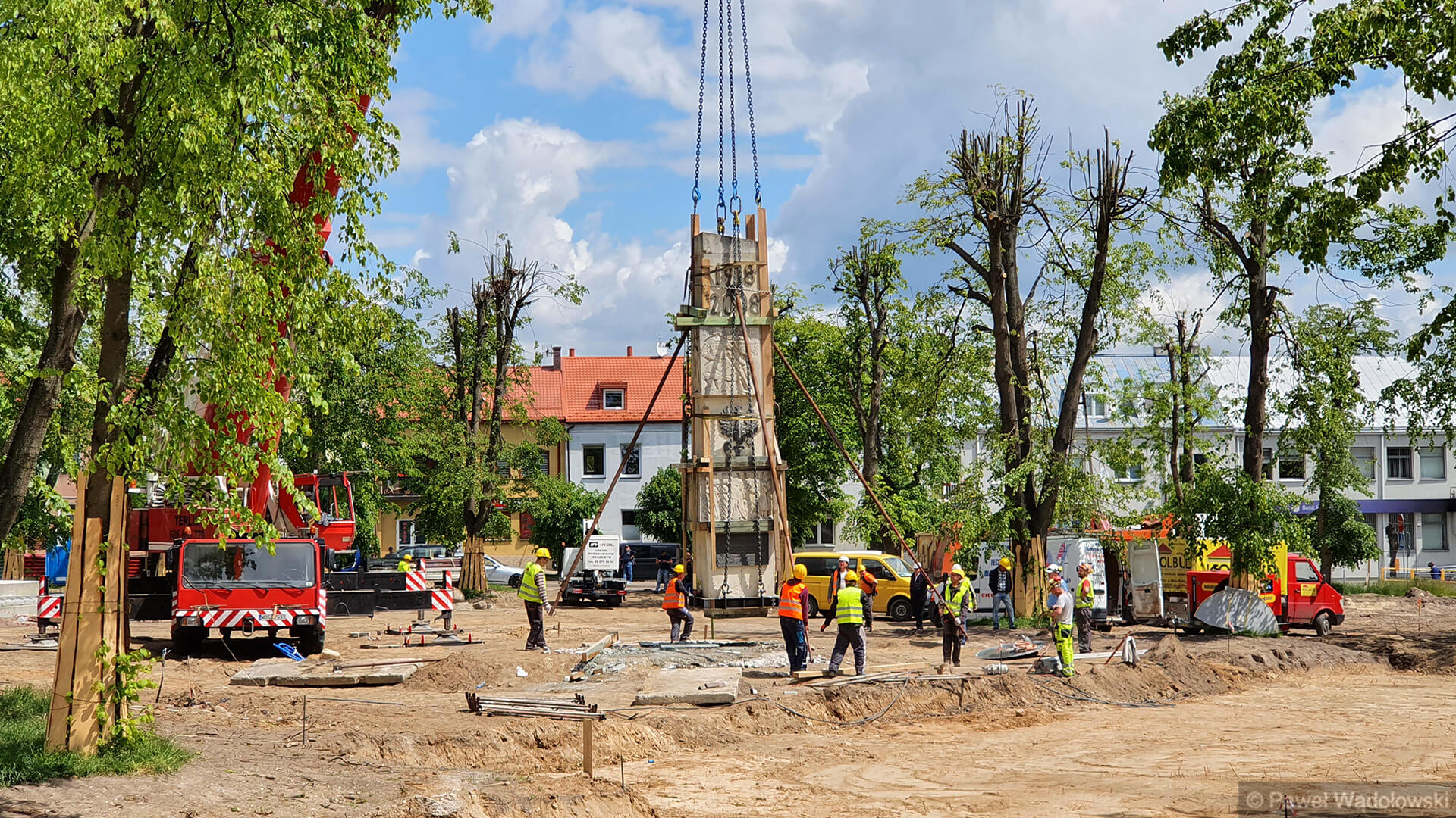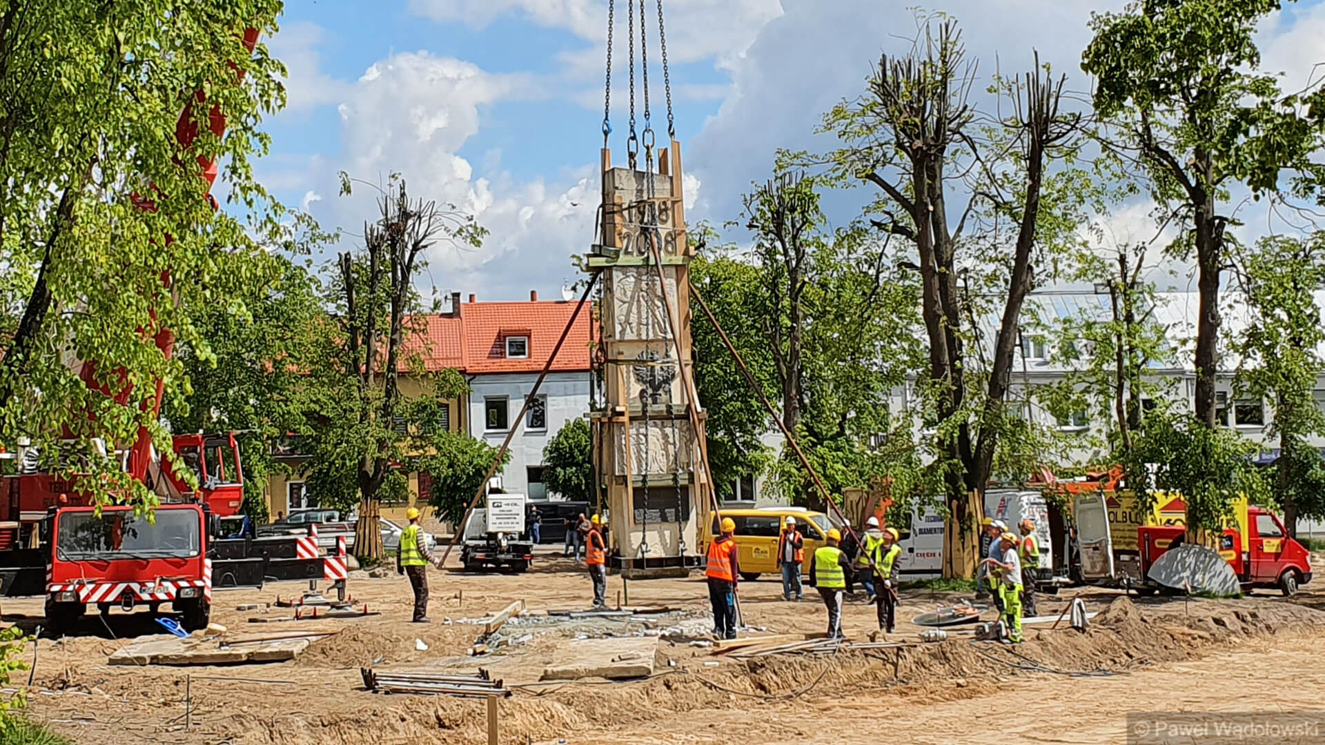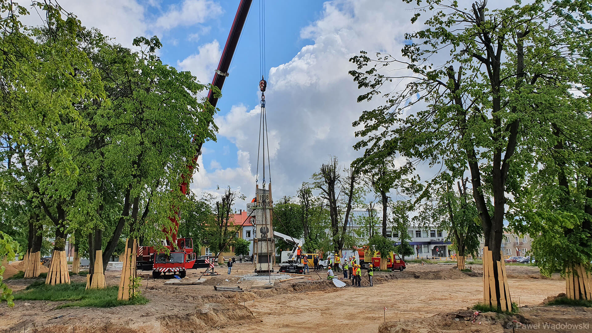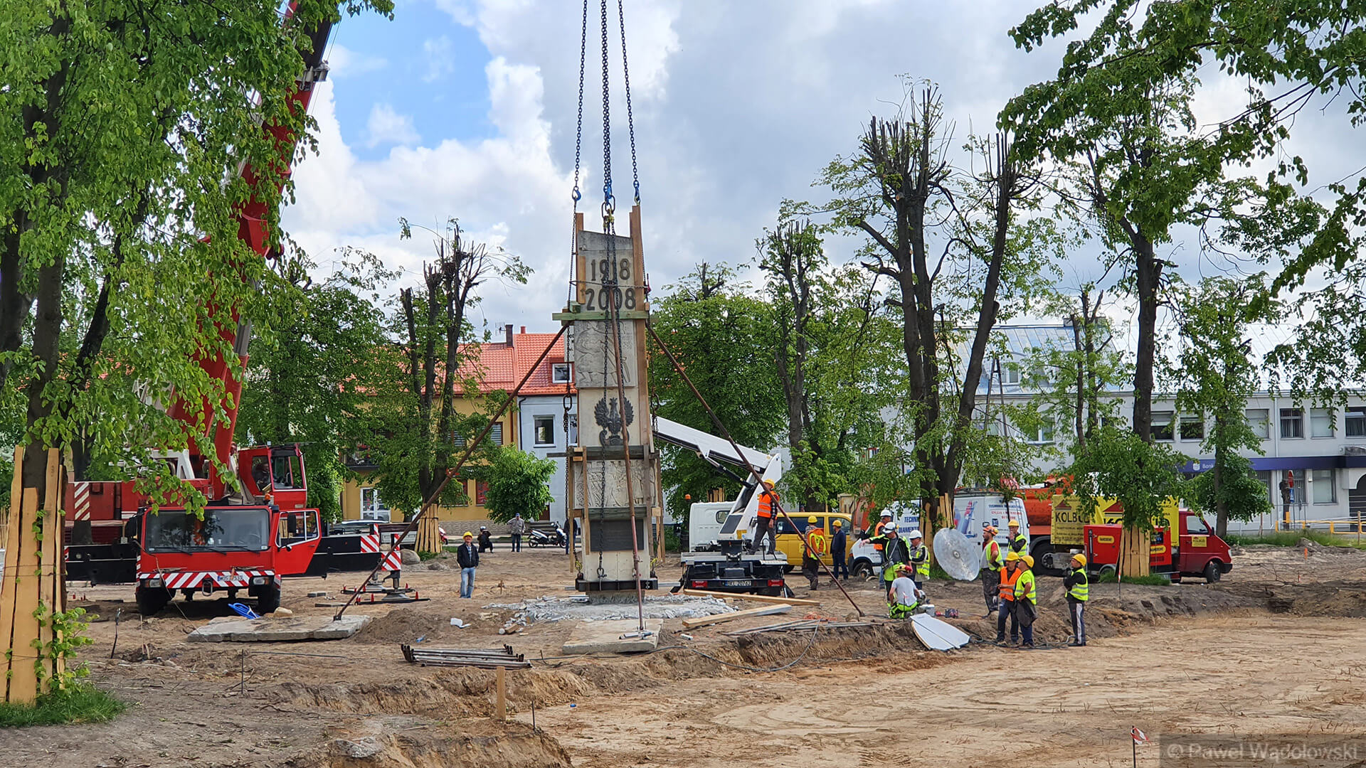 Radio Białystok | Wiadomości | Wiadomości - Pomnik Niepodległości, który waży ponad 20 ton trzeba było przenieść w inne miejsce Kolna [zdjęcia, wideo]