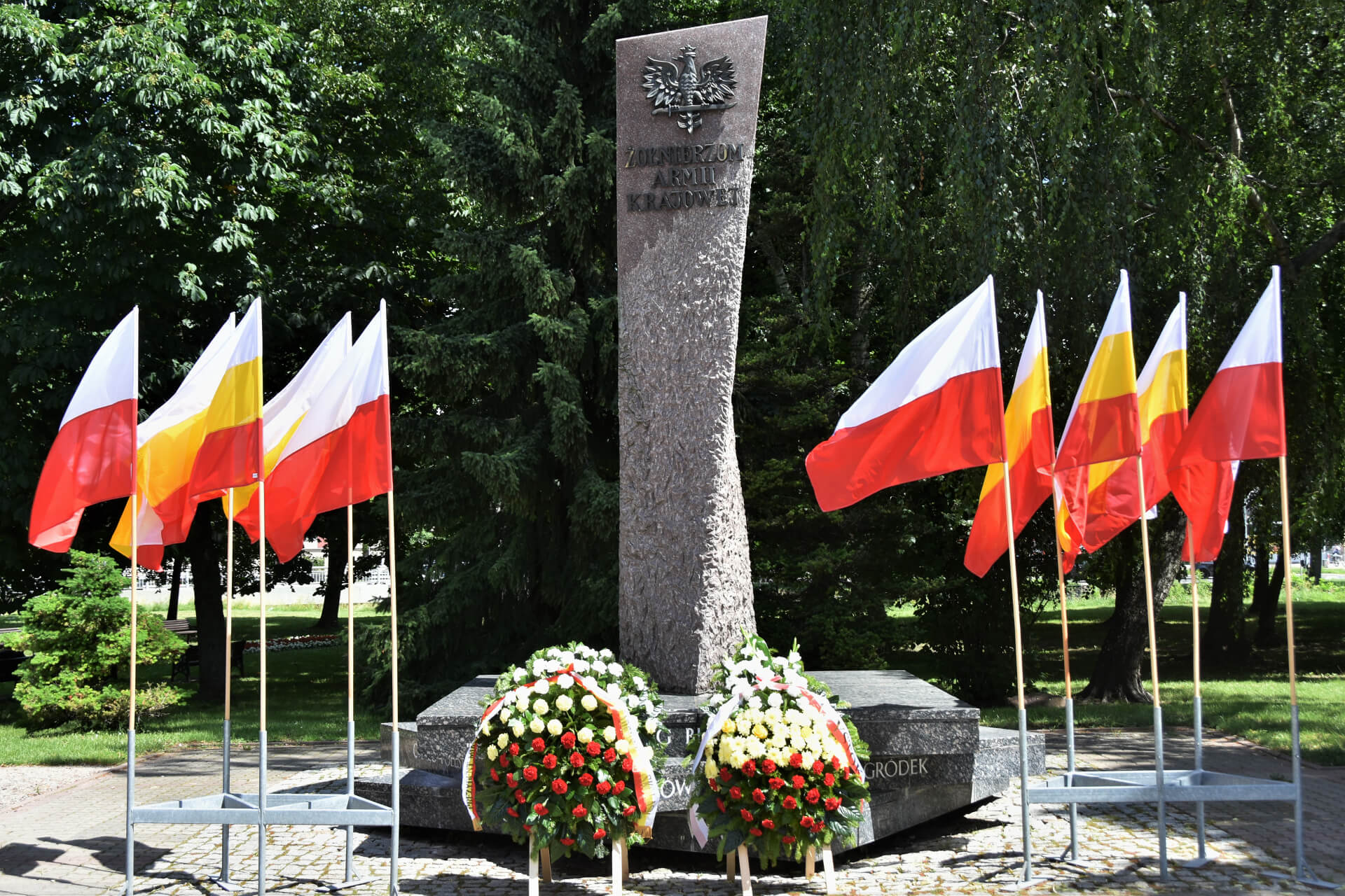 Wcześniej przed pomnikiem "Żołnierzom Armii Krajowej" kwiaty złożyli zastępca prezydenta Białegostoku Przemysław Tuchliński i przewodniczący Rady Miasta Łukasz Prokorym.