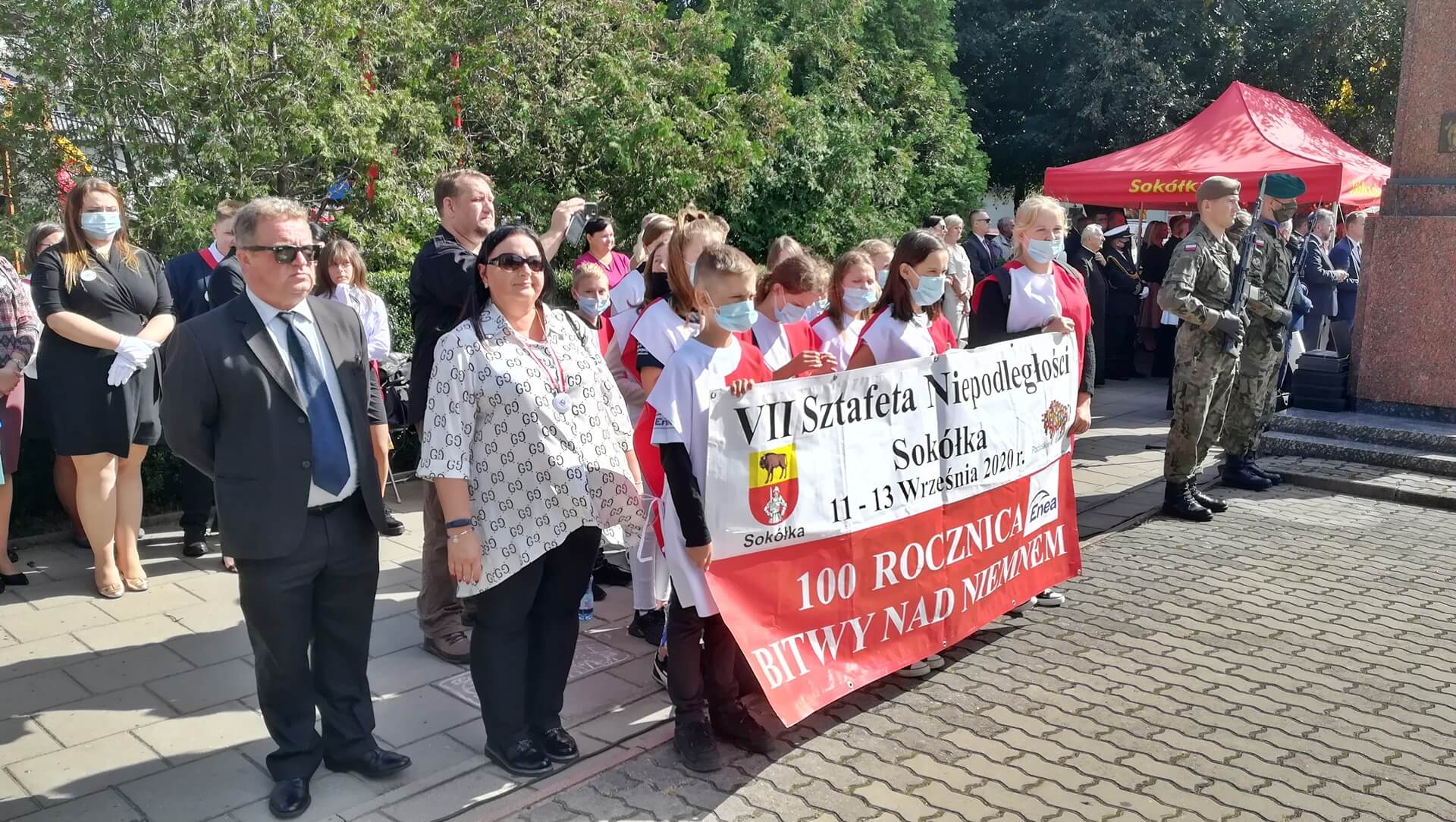 Odsłonięta została pamiątkowa tablica, ufundowana przez IPN. "W setną rocznicę bitwy niemeńskiej, bohaterom poległym za niepodległość ojczyzny i w obronie jej granic - wdzięczni sokólczanie" - taki napis na niej się znalazł. Szkoła podstawowa w Starej Kamionce (gmina Sokółka) od niespełna trzech miesięcy nosząca imię Bohaterów Bitwy Niemeńskiej, otrzymała sztandar.