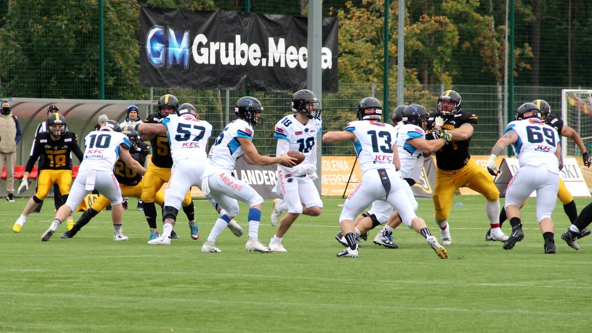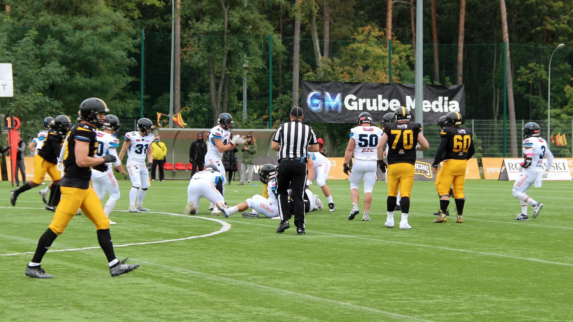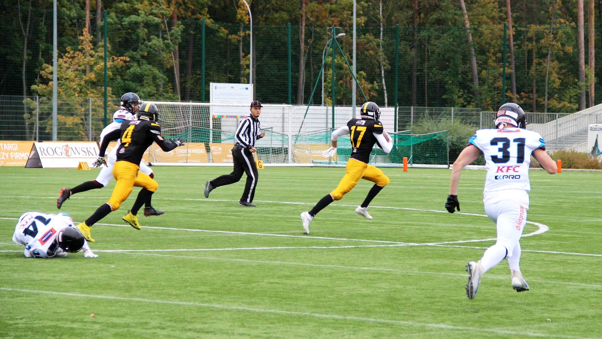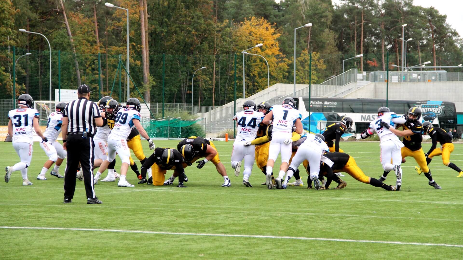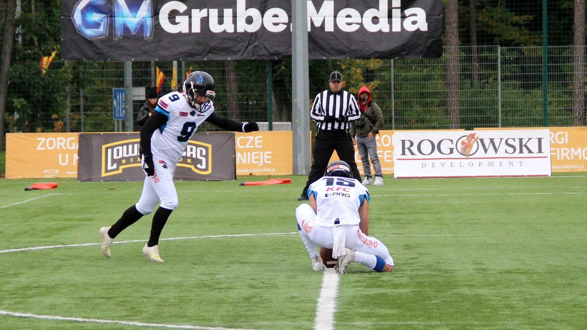 To białostoccy futboliści rozpoczęli lepiej spotkanie. Prowadzili 6:0, ale z kolejnymi minutami coraz pewniej grali rywale Lowlandersów. Panthers Wrocław odrobili stratę punktową i na przerwę, po drugiej kwarcie, schodzili z boiska, prowadząc 6:16.