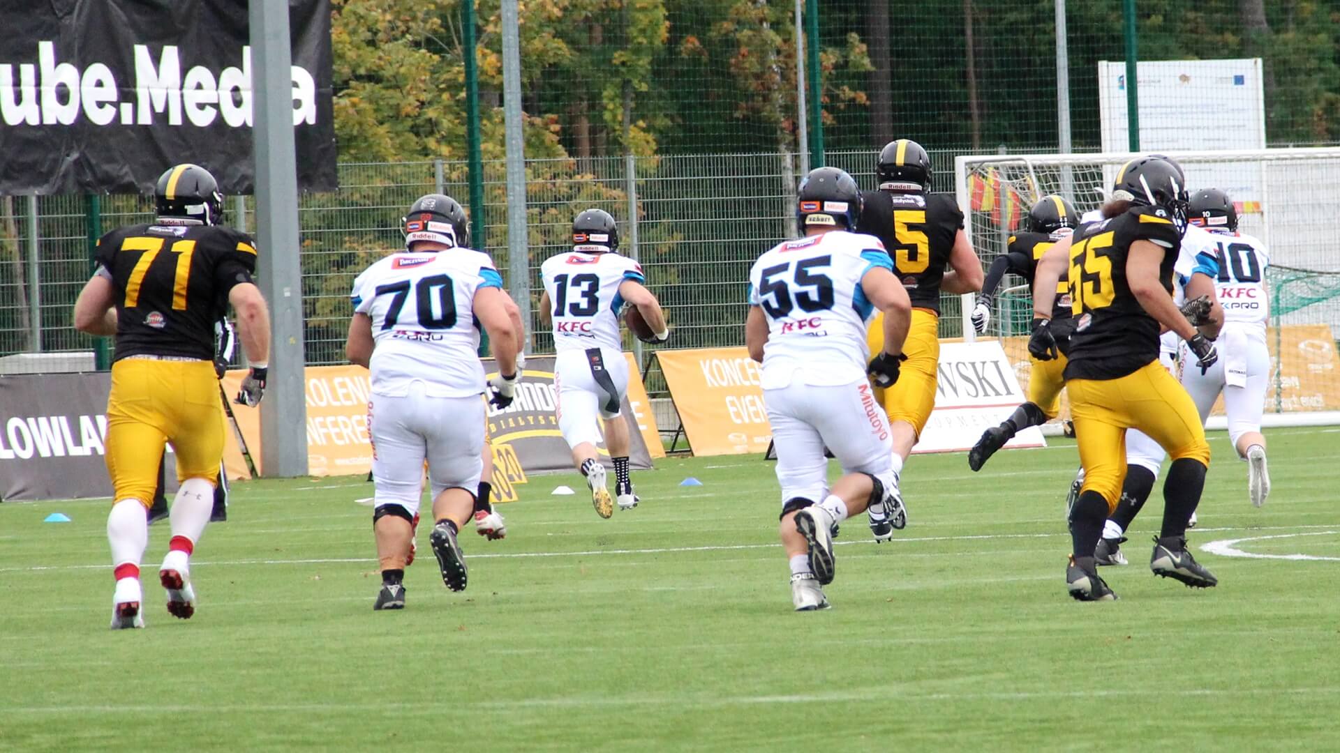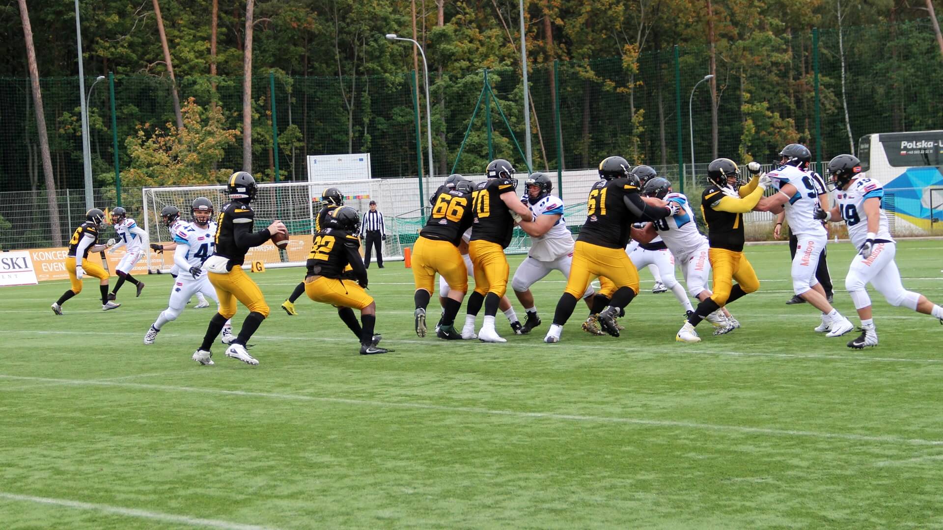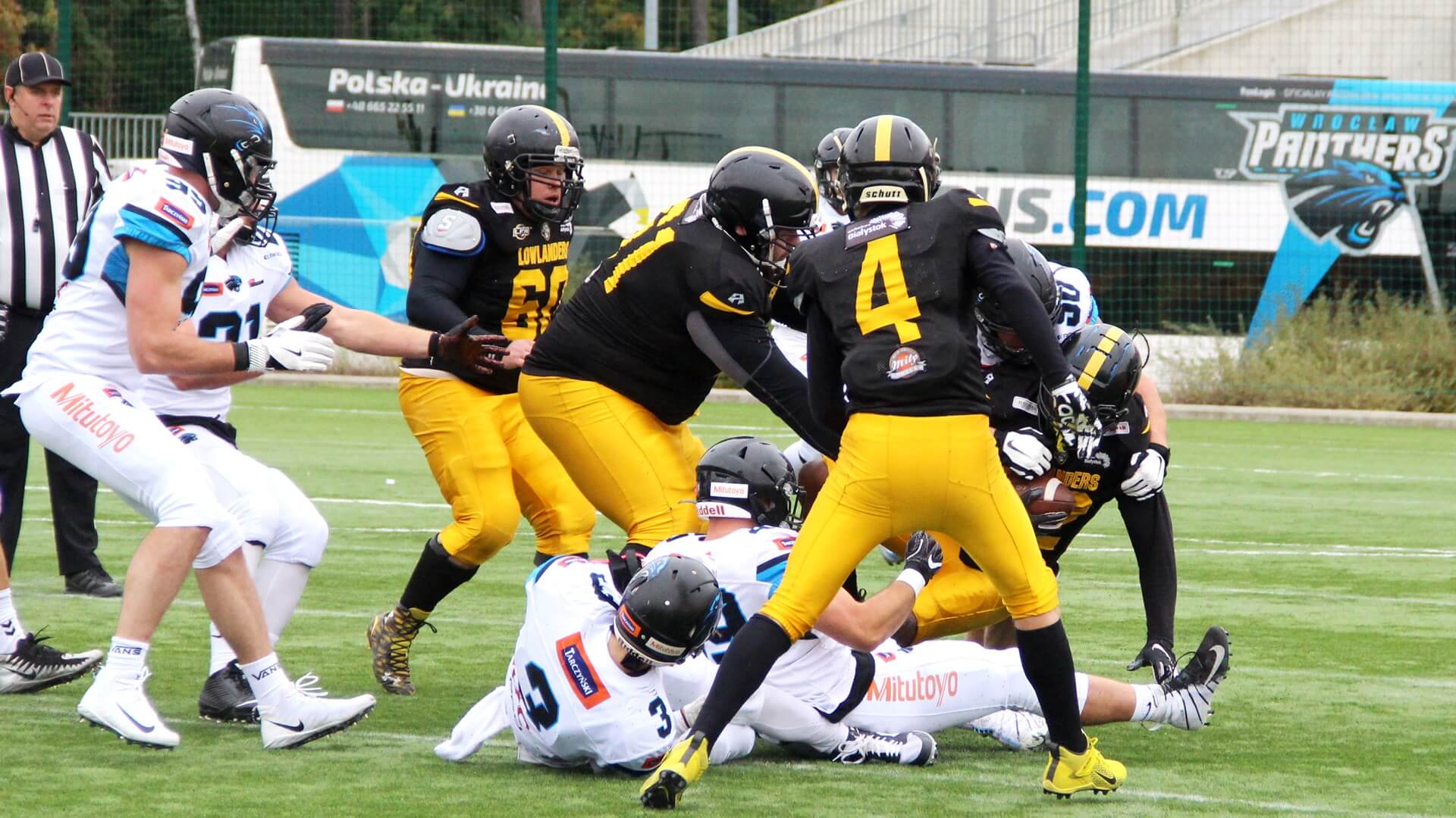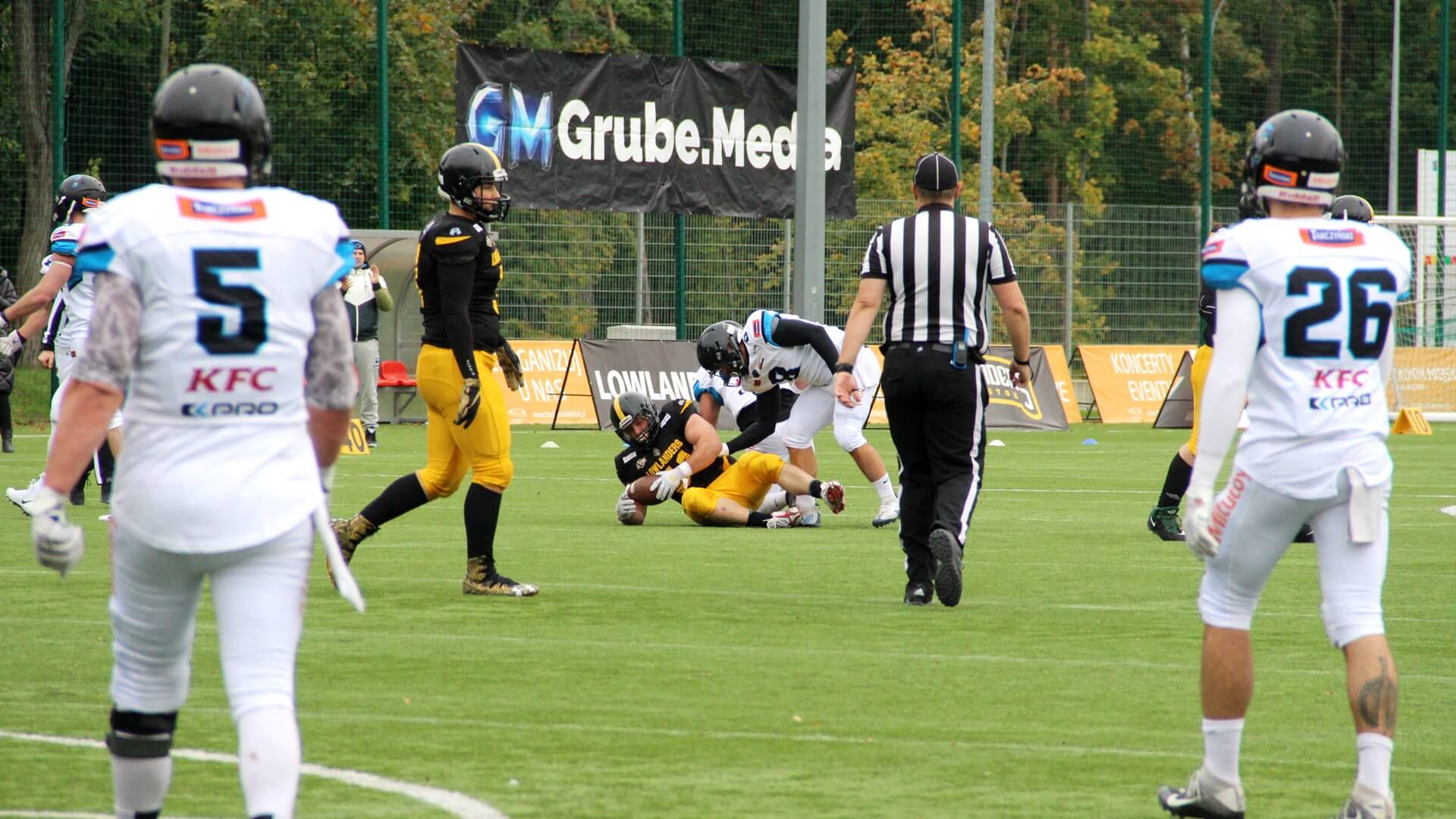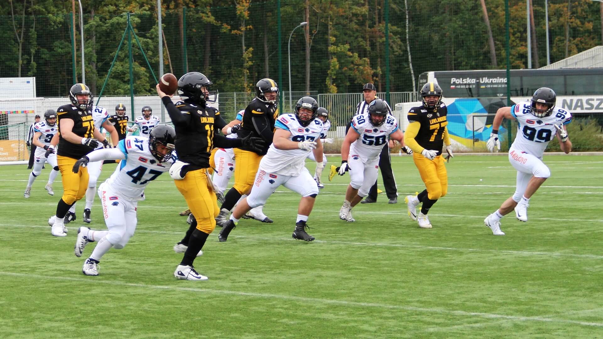 To białostoccy futboliści rozpoczęli lepiej spotkanie. Prowadzili 6:0, ale z kolejnymi minutami coraz pewniej grali rywale Lowlandersów. Panthers Wrocław odrobili stratę punktową i na przerwę, po drugiej kwarcie, schodzili z boiska, prowadząc 6:16.