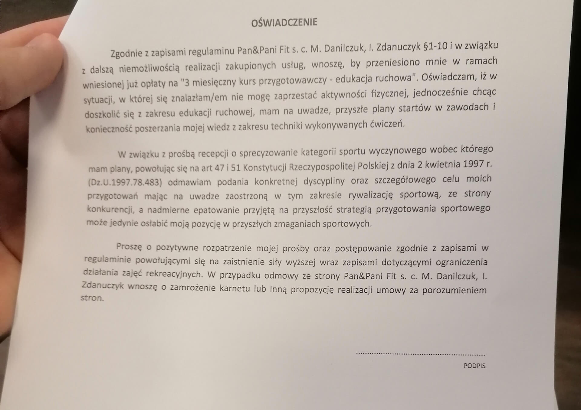 To, co zaproponował rząd, nie wystarczy na cokolwiek. Moja działalność, to są trzy kluby. Według zapowiedzi rządu, na te trzy kluby otrzymam 5 tys. zł. Jest to kropla w morzu potrzeb. Średni koszt utrzymania takiej siłowni, już po skorzystaniu z tarczy i bez płacenia pracownikom, bez składek ZUS, to jest około 50 tys. zł miesięcznie