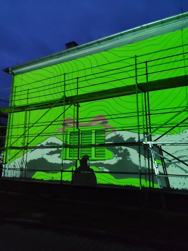 Mural powstaje w ramach inicjatywy lokalnej w projekcie "Klub Integracji Społecznej w Mońkach”, realizowanym przez Ośrodek Wspierania Organizacji Pozarządowych w partnerstwie z Miejskim Ośrodkiem Pomocy Społecznej w Mońkach.