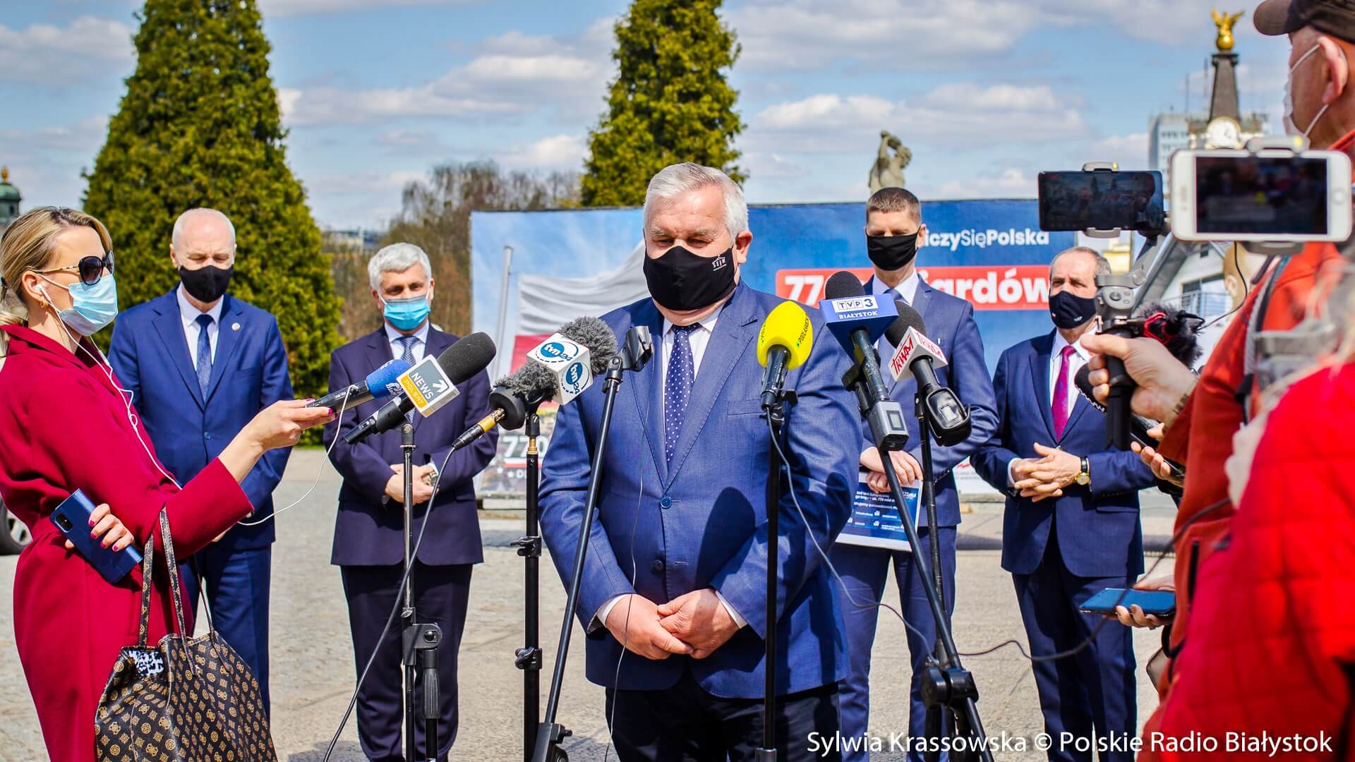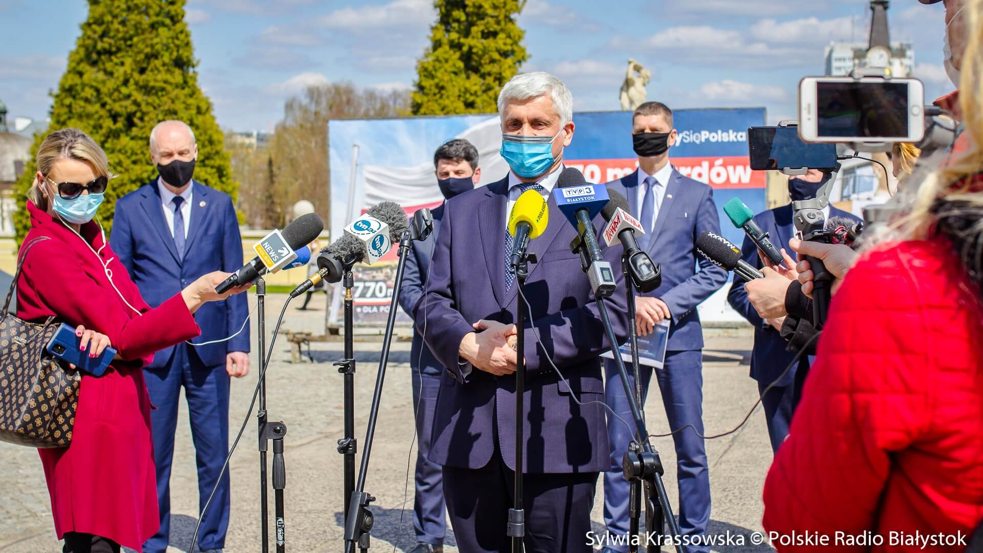 Białostocka konferencja polityków PiS zorganizowana została na dziedzińcu Pałacu Branickich, w ramach rządowej akcji #LiczySięPolska, dotyczącej 770 mld zł środków unijnych.