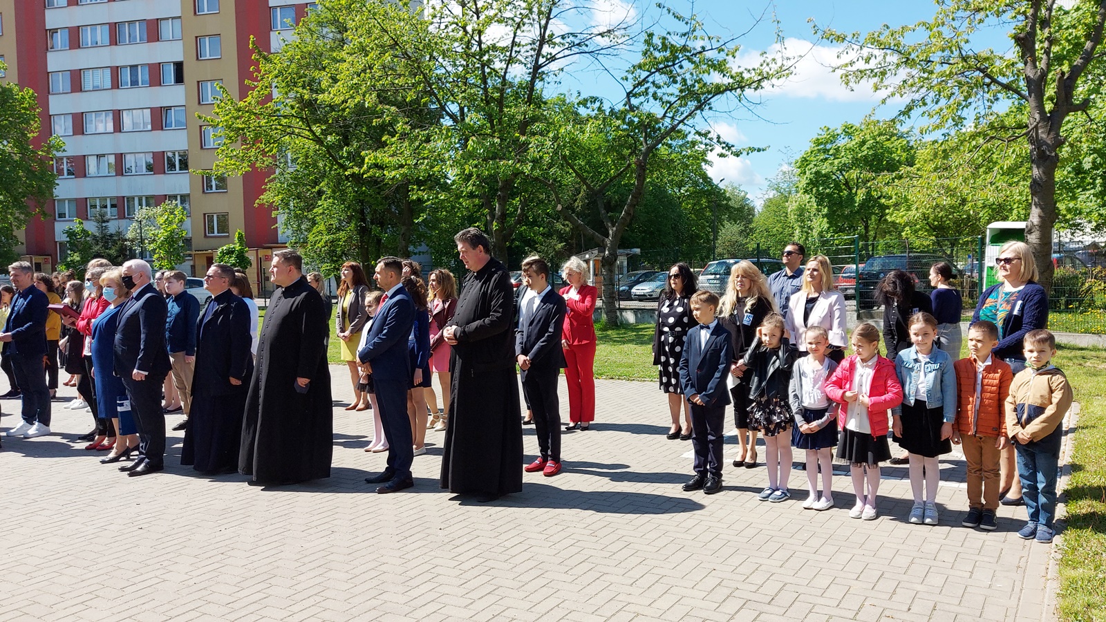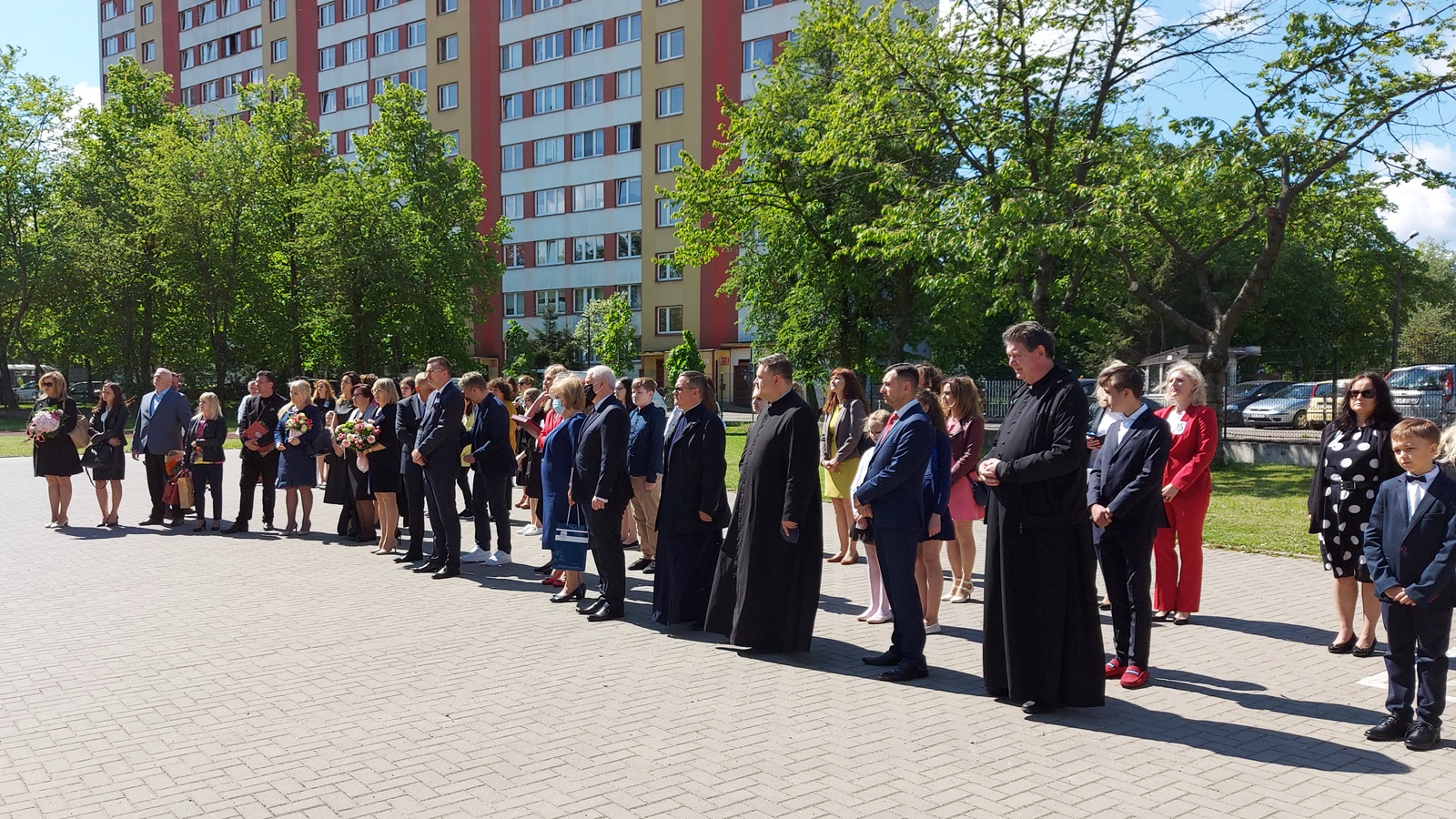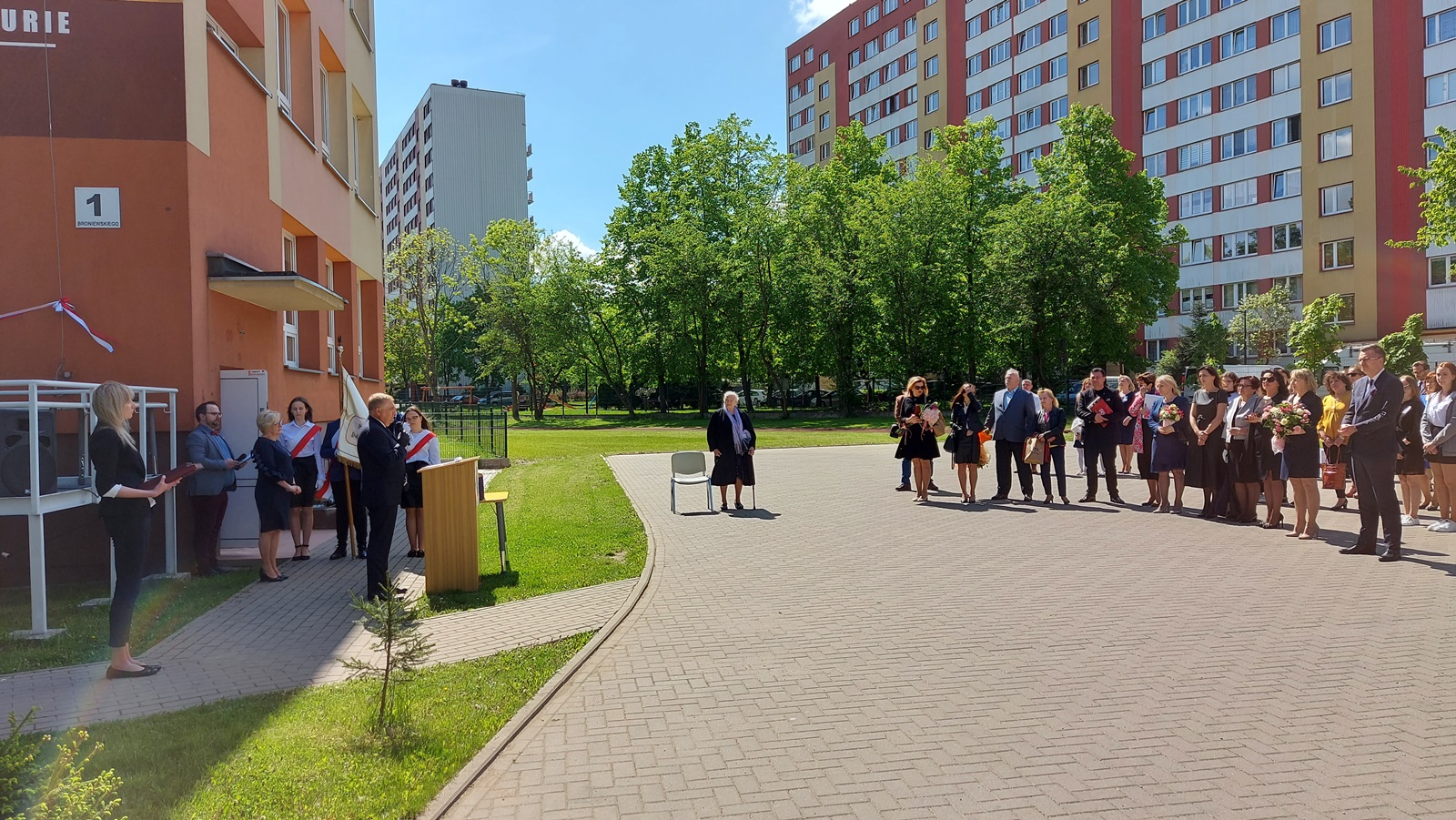 Z powodu pandemii władze szkoły nie mogły zorganizować hucznych obchodów i były to skromne uroczystości na placu przed budynkiem.