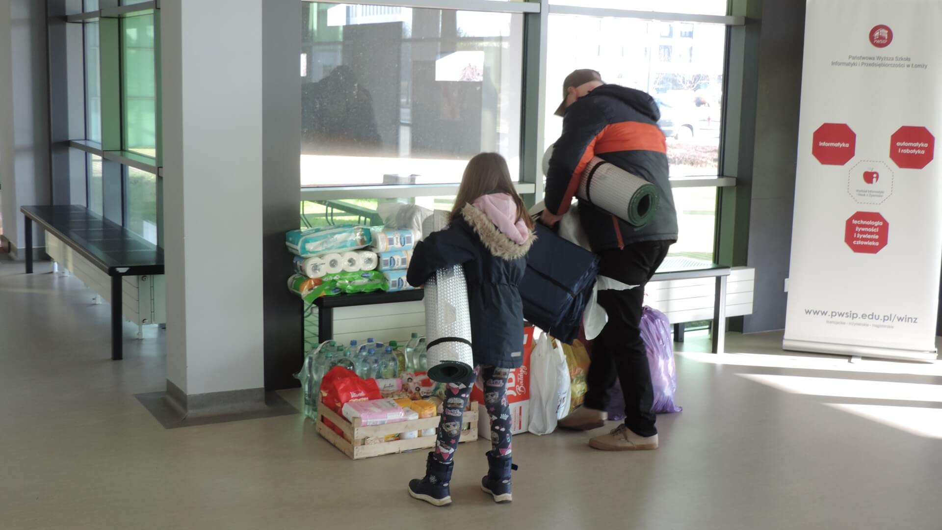 Zbiórkę żywności i artykułów pierwszej pomocy dla Ukrainy rozpoczęła Państwowa Wyższa Szkoła Informatyki i Przedsiębiorczości w Łomży. Koce i środki czystości można też przynosić do galerii Veneda.