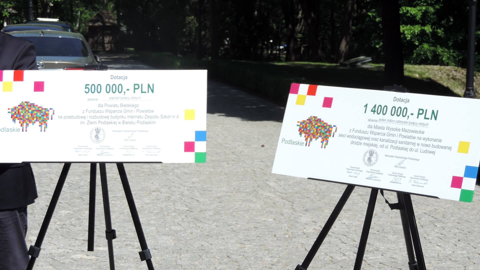 Przedstawiciele samorządów odebrali czeki łącznie na 4,7 mln zł z Funduszu Wsparcia Gmin i Powiatów. Fundusz to autorska inicjatywa naszego województwa, które od ubiegłego roku - jako jedyne w Polsce - dotuje z własnych środków inwestycje zgłaszane przez podlaskie powiaty i gminy.