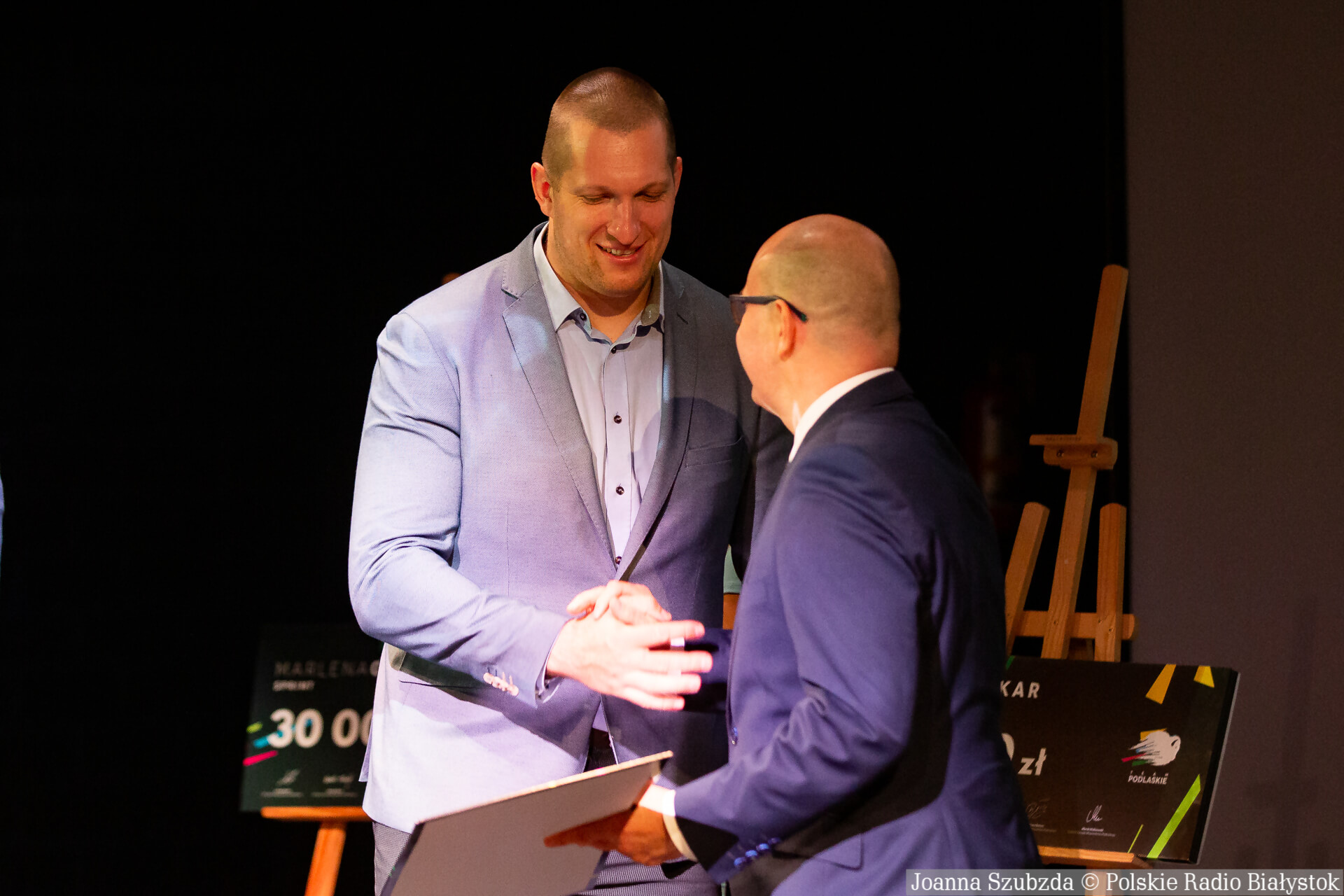 Młociarz Wojciech Nowicki z Białegostoku został nagrodzony podwójnie - otrzymał dwa czeki po 30 tysięcy złotych za reprezentowanie regionu i całokształt dokonań.