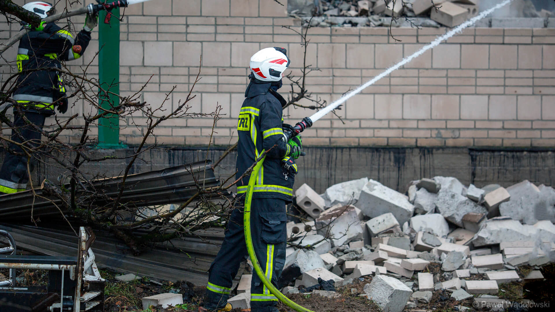 Początkowo mieli problem z wejściem do środka. Kiedy im się to udało, zobaczyli, że w wózku widłowym jest ciało mężczyzny. To najprawdopodobniej osoba, która pilnowała terenu. Jak udało się ustalić Polskiemu Radiu Białystok, mężczyzna miał 52 lata i był mieszkańcem powiatu kolneńskiego. Mógł wejść do budynku, żeby próbować uratować wózek widłowy.