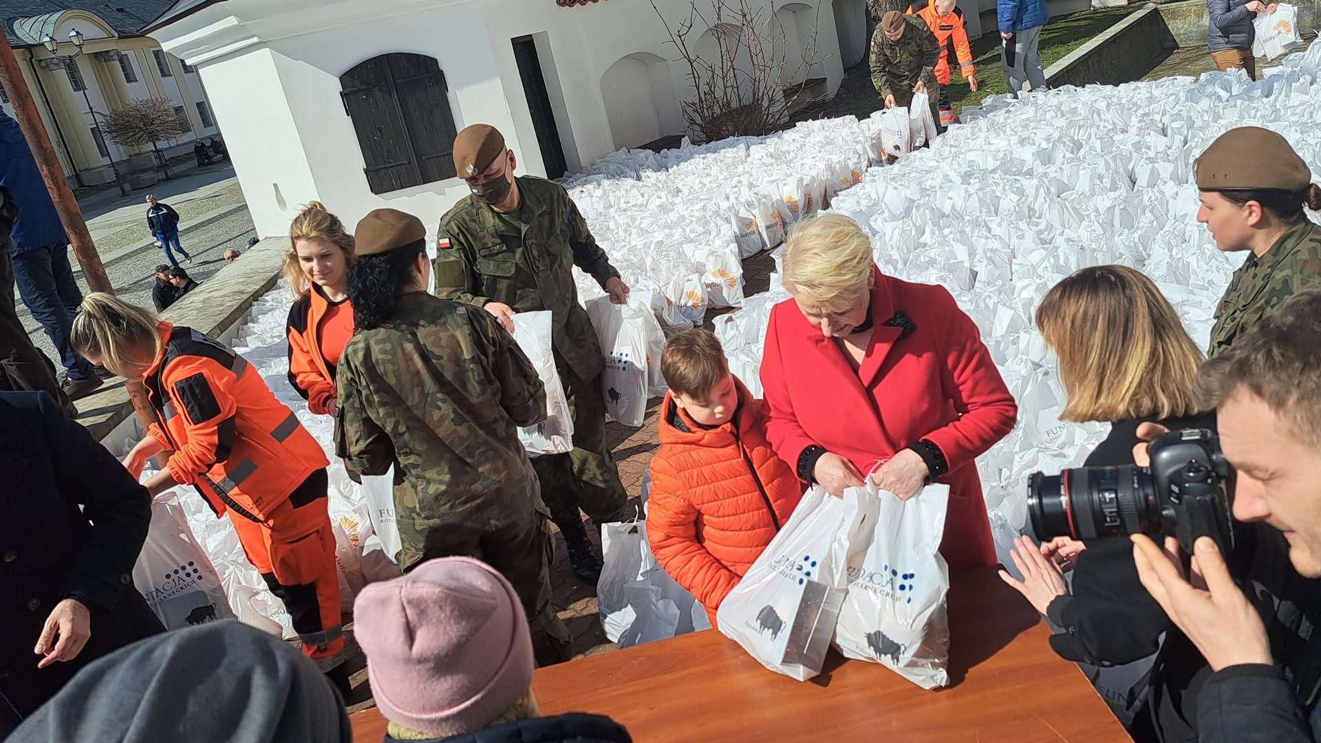 "Przygotowaliśmy w tym roku 1 500 paczek. Każda z osób przybyłych na dzisiejsze wydarzenie otrzyma dwie paczki. W jednej paczce znajdują się produkty z długim terminem przydatności do spożycia, w drugiej tradycyjne potrawy wielkanocne" - powiedziała jedna z organizatorek akcji pomocy, Dominika Czarnecka z Fundacji Rodziny Czarneckich. Pakiet dwóch paczek waży ok. 6-7 kg.