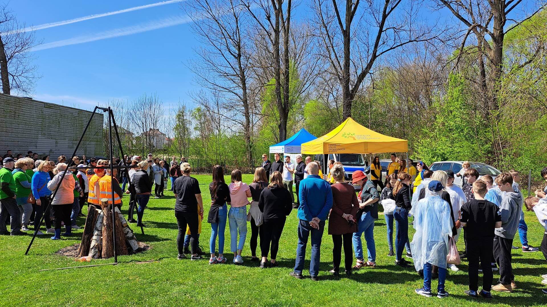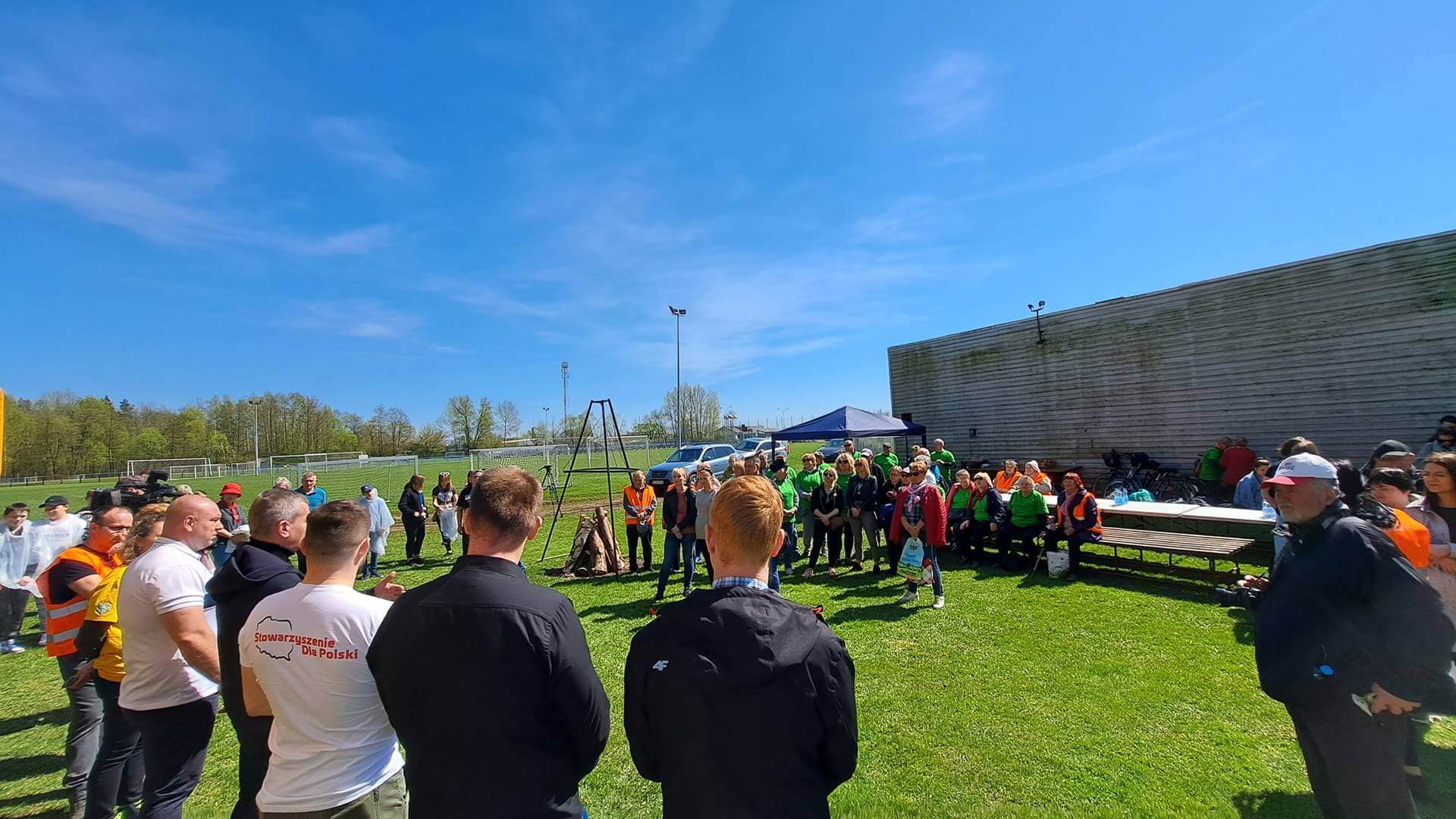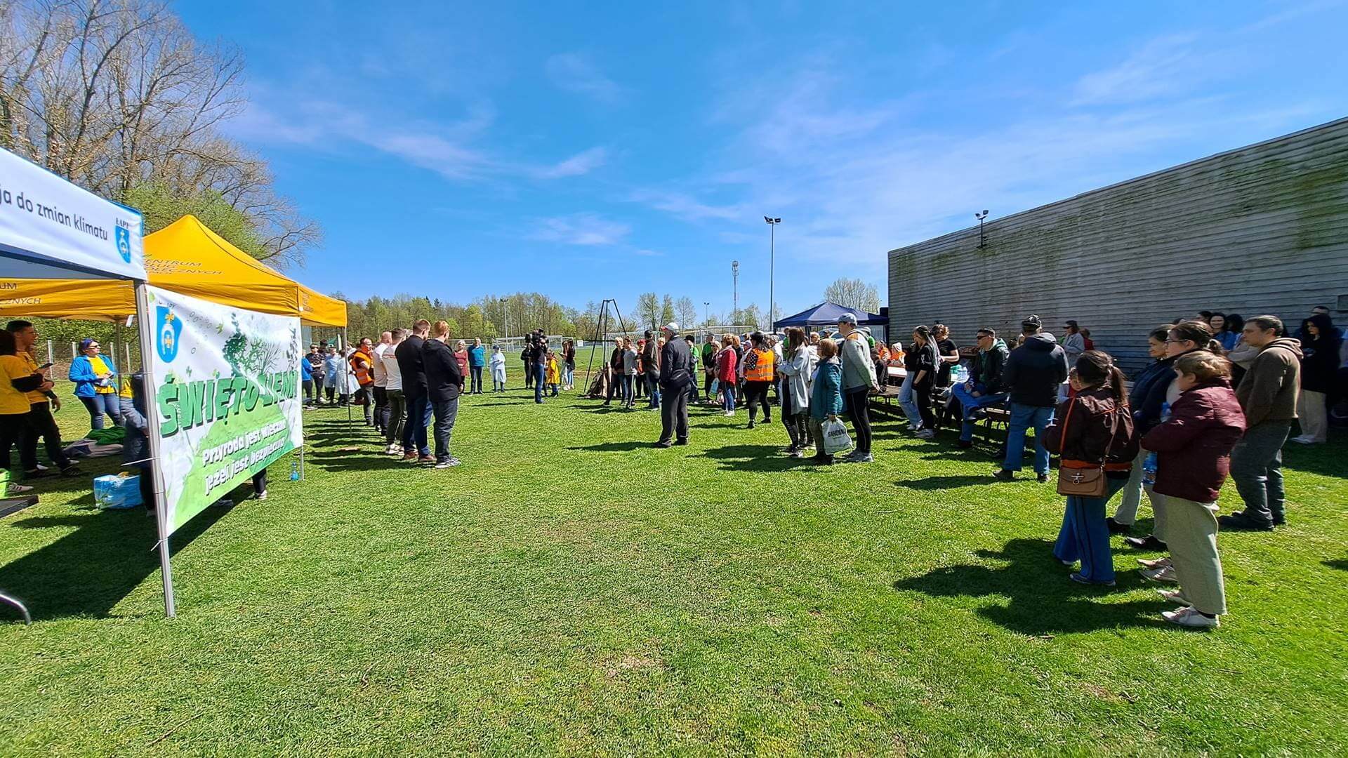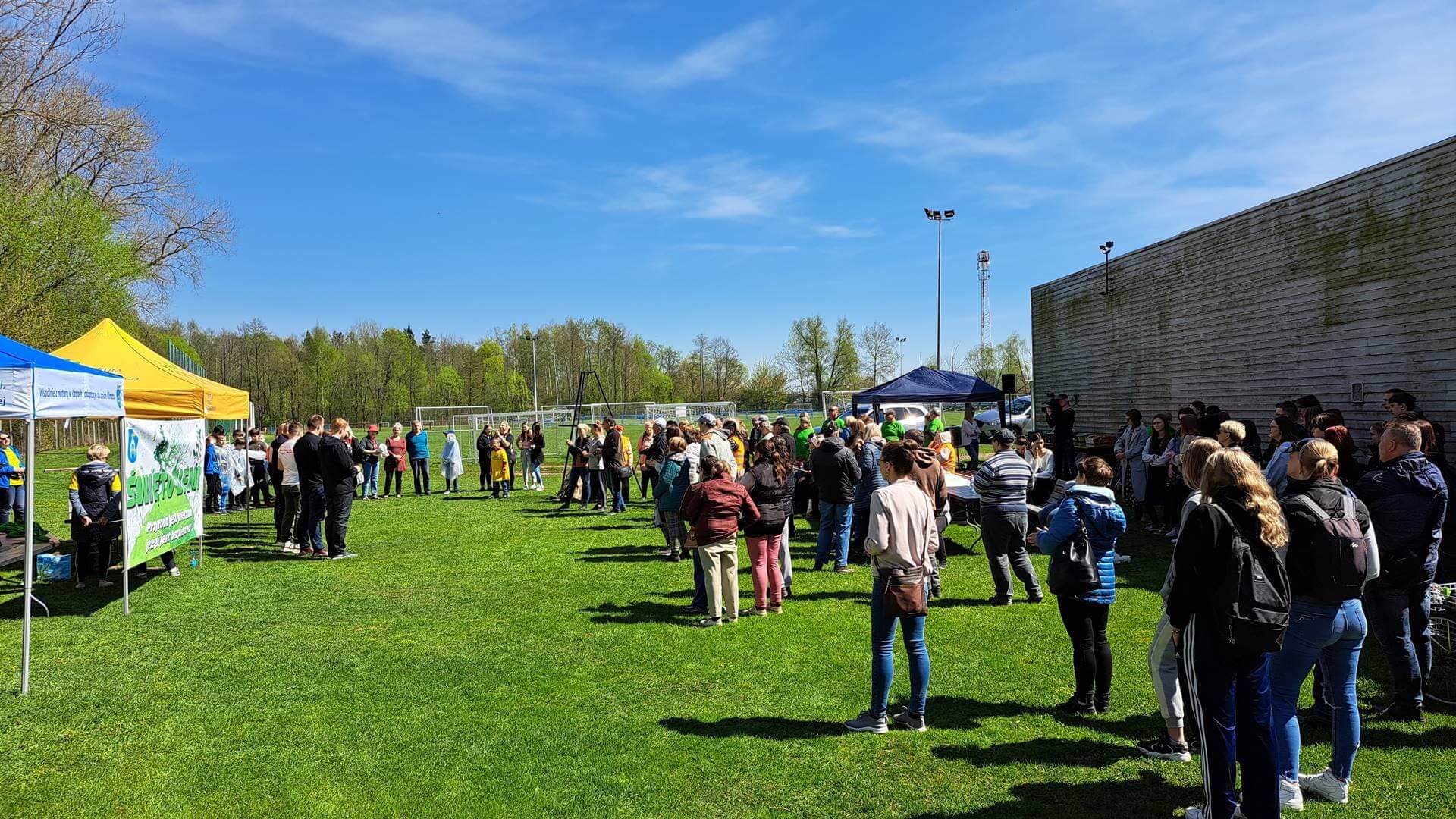 W obchody Dnia Ziemi włączyło się też kilkadziesiąt osób w Łapach - m.in. uczniowie i seniorzy. Posprzątali oni teren przy tamtejszym stadionie miejskim.