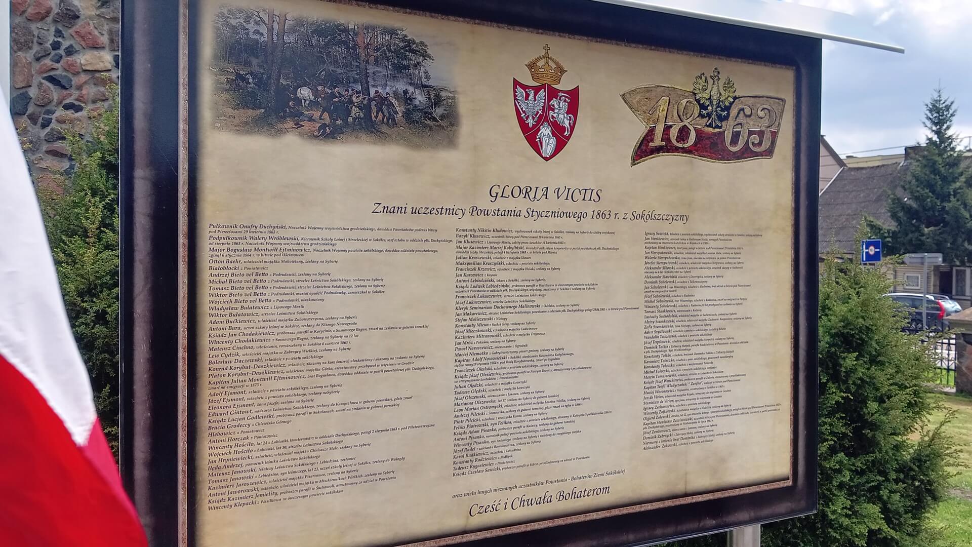 - Na Sokólszczyźnie były wzgórza zwane "Szubienicą", koło Kuźnicy, koło Bilmin, gdzie wieszano schwytanych powstańców styczniowych. Ci ludzie walczyli, szli do lasu. Składamy im hołd. W samej Sokółce nie było żadnego miejsca upamiętniającego to wydarzenie z lat 1863-1864. A pamięć o nich nie powinna zaginąć. O tych, których udało nam się ustalić z imienia i nazwiska, którzy są na tablicy informacyjnej. Ale jest też wielu nieznanych powstańców, nie wiemy, gdzie są pochowani - mówił dowódca Sokólskiego Pododdziału Kawalerii im. 10. Pułku Ułanów Litewskich mjr Piotr Horsztyński.