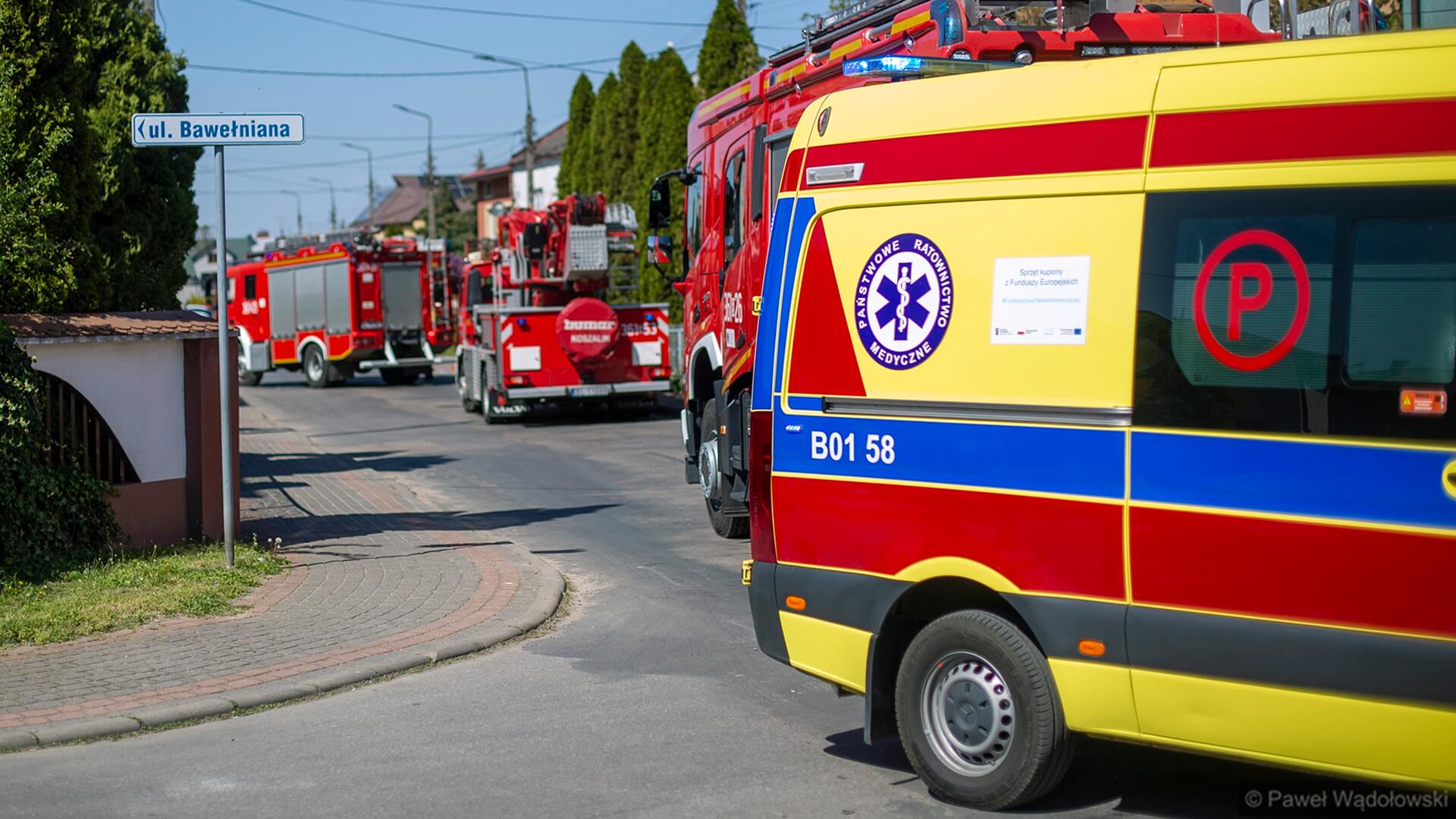 Razem z 79-letnim mężczyzną była w domu także jego 2 lata młodsza żona, kobiecie nic się nie stało. Na miejscu cały czas pracują 4 zastępy straży pożarnej, jest też karetka pogotowia i policja.