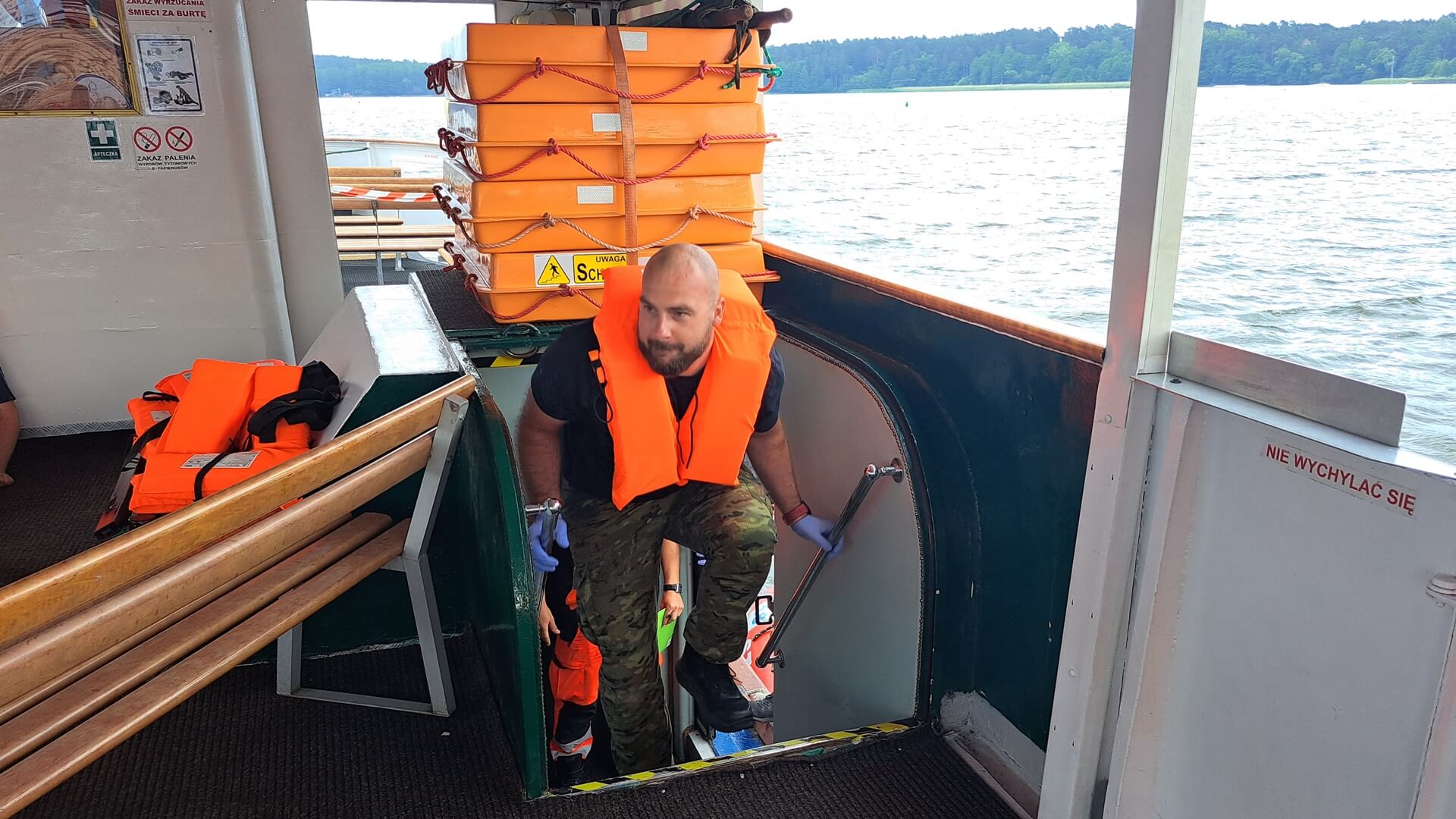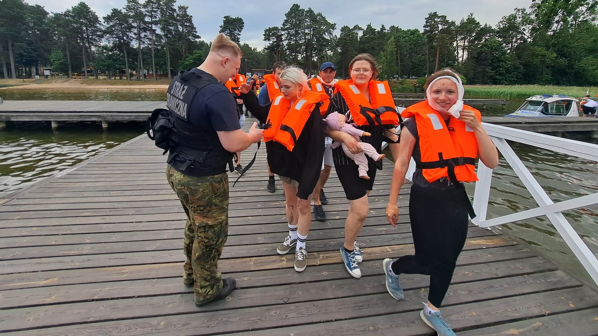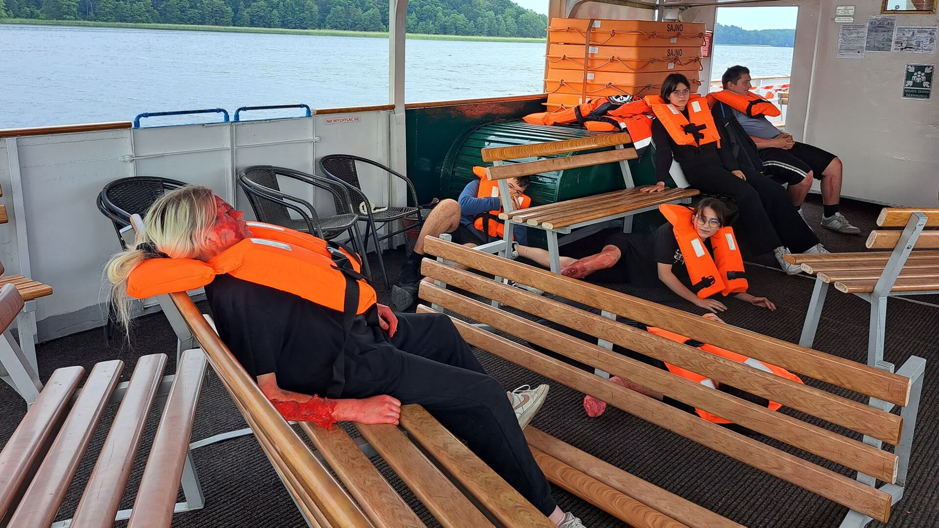Zawodnicy mają do wykonania różne zadania, które mają pomóc im przełamać strach i lęk przed udzieleniem pomocy osobom poszkodowanym. Ewakuują właśnie pełen rannych osób statek. Na jego pokładzie wybuchł pożar. Musza posegregować ludzi, wybrać tych, którzy są w najpoważniejszym stanie, później tych mniej chorych oraz tych co mogą się samodzielnie ruszać - mówił ratownik medyczny podlaskiego oddziału straży granicznej Zbigniew Sobiesiak.