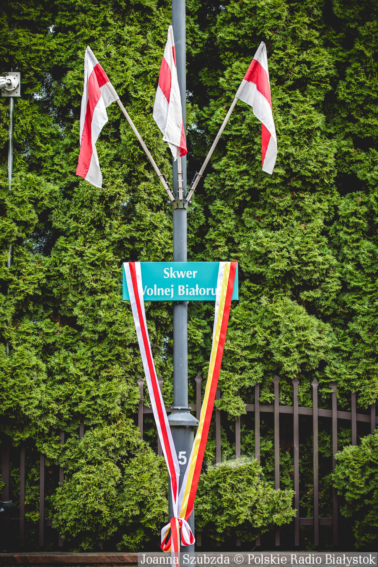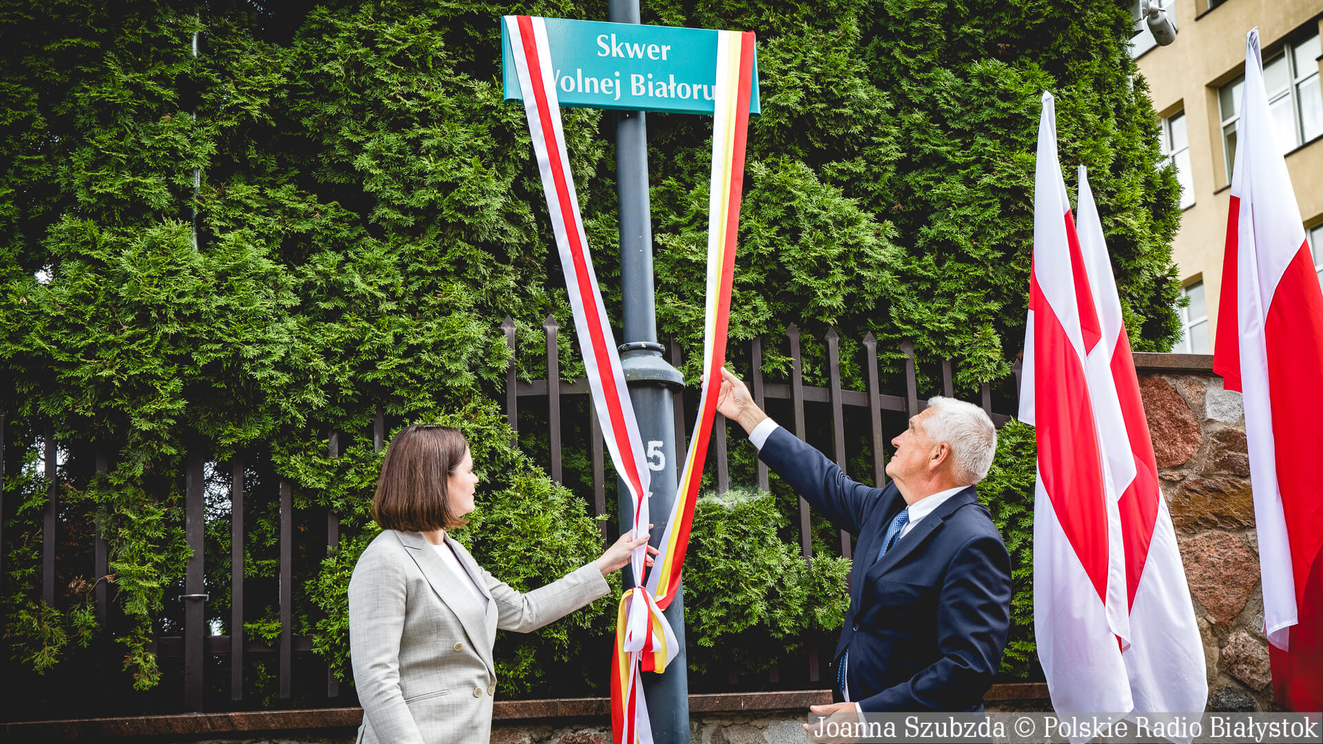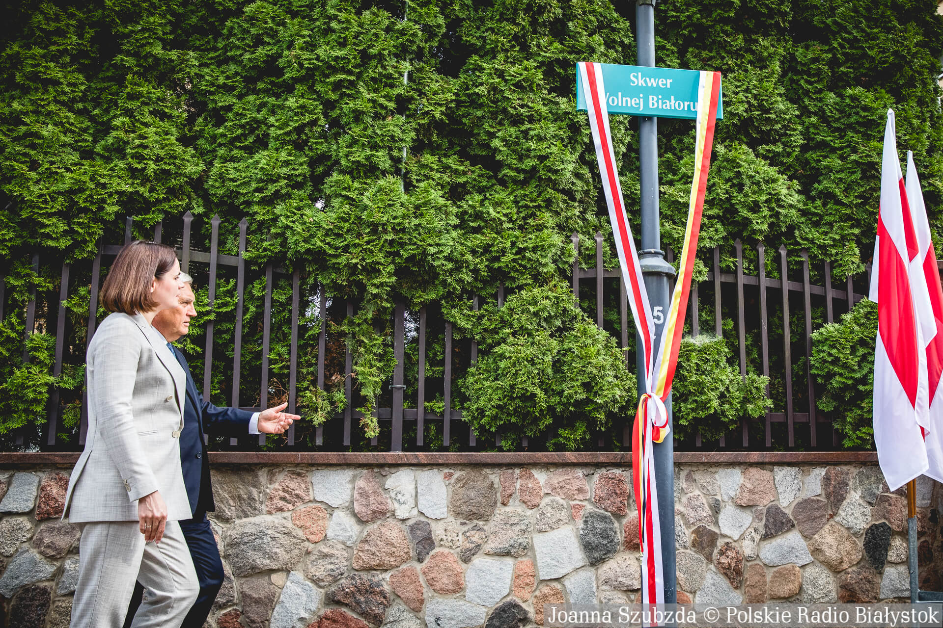 Radio Białystok | Wiadomości | Wiadomości - Były podziękowania i okrzyki "Niech żyje Białoruś". W Białymstoku oficjalnie otwarto Skwer Wolnej Białorusi [zdjęcia]