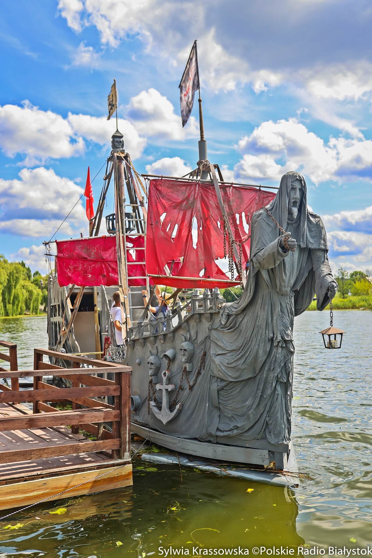 Największy wehikuł to replika dalekomorskiego galeonu z czasów Krzysztofa Kolumba. Statek ma 11 metrów długości i blisko 7 metrów wysokości. Dziób zwieńczony jest ogromną rzeźbą. To pływadło można wylicytować - pieniądze przeznaczone będą na rzecz Stowarzyszenia Pomocy Dzieciom z Porażeniem Mózgowym "Jasny Cel".
