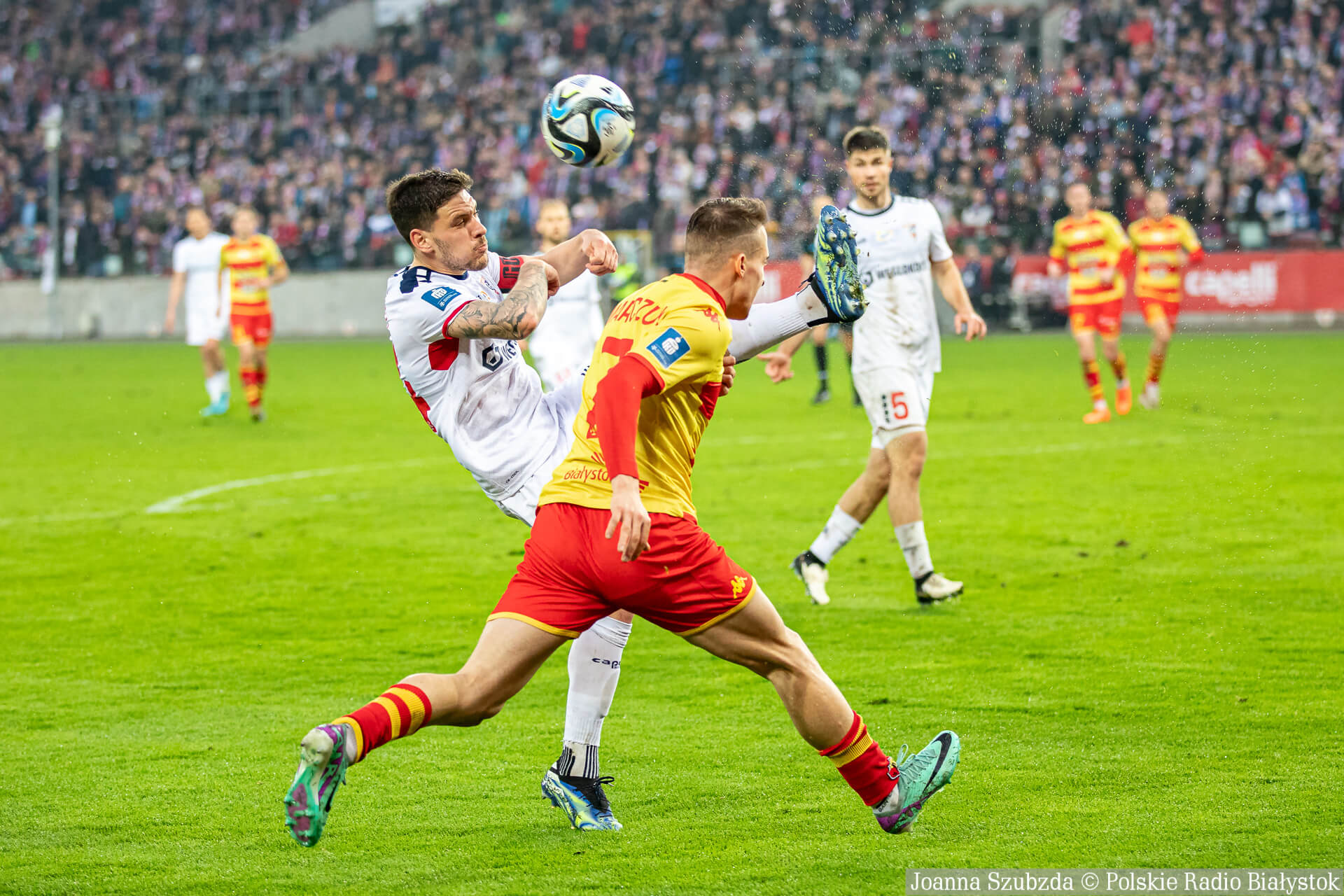 Gospodarze bardzo krótko cieszyli się z dwubramkowego prowadzenia. Jagiellonia szybko odpowiedziała a gola strzelił Kaan Caliskaner.