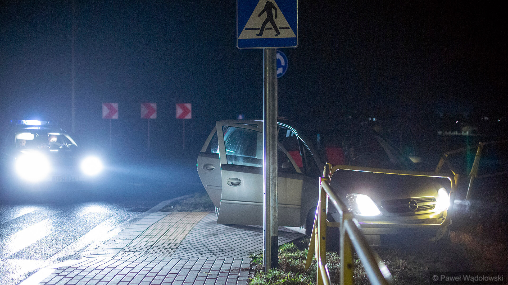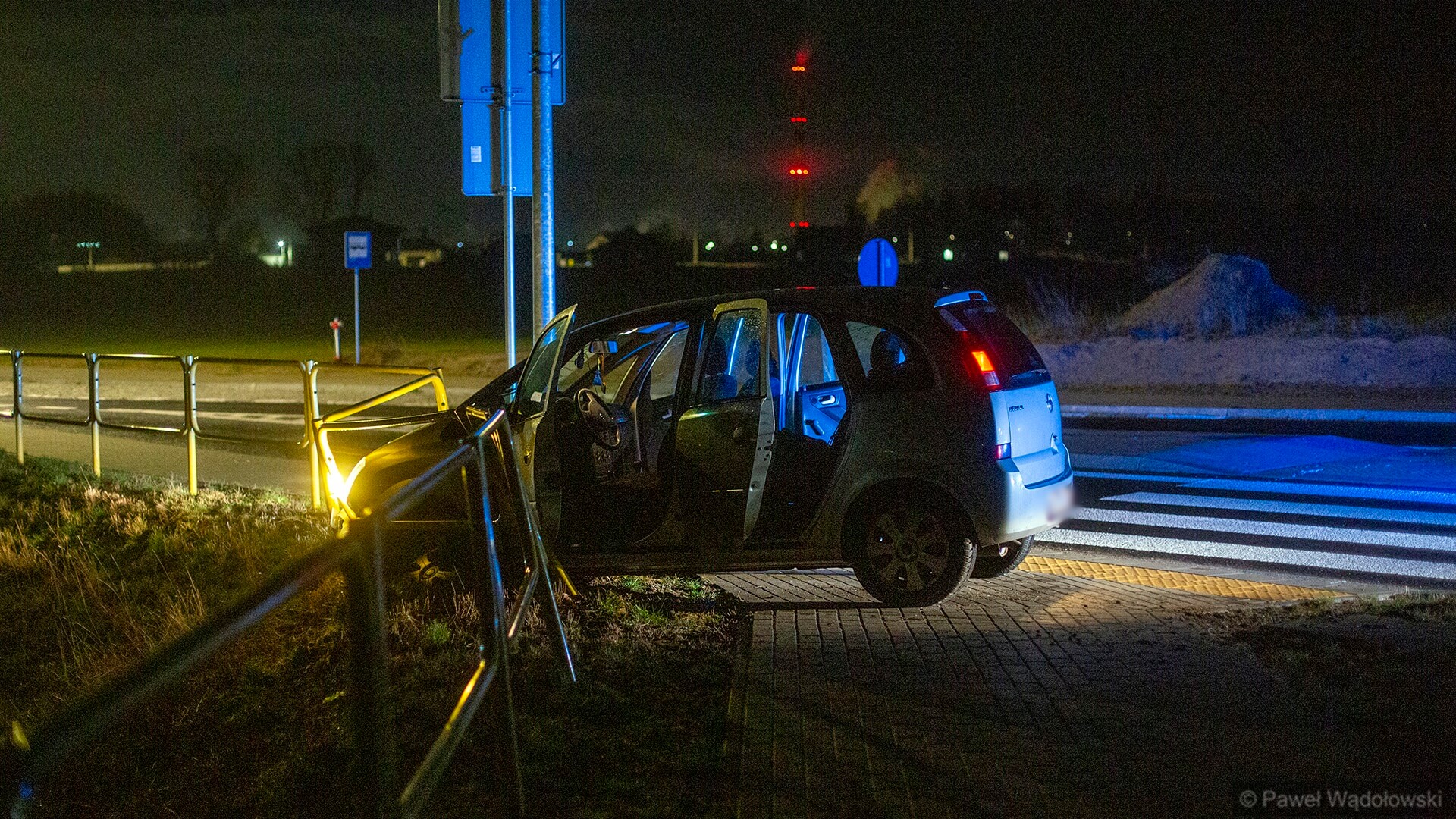 Jego kierowca najprawdopodobniej nie zapanował nad samochodem i auto wjechało w barierki. Są w nim otwarte wszystkie drzwi. Z tego co udało się ustalić nieoficjalnie reporterowi Polskiego Radia Białystok, Oplem jechały cztery osoby. Trzech mężczyzn i młoda kobieta. Mężczyźni uciekli zostawiając ją w samochodzie. Kobieta trafiła od razu do policyjnego radiowozu, a inne patrole wyjechały szukać uciekinierów. Jeden z nich najprawdopodobniej został zatrzymany kilka minut po 21:00.
