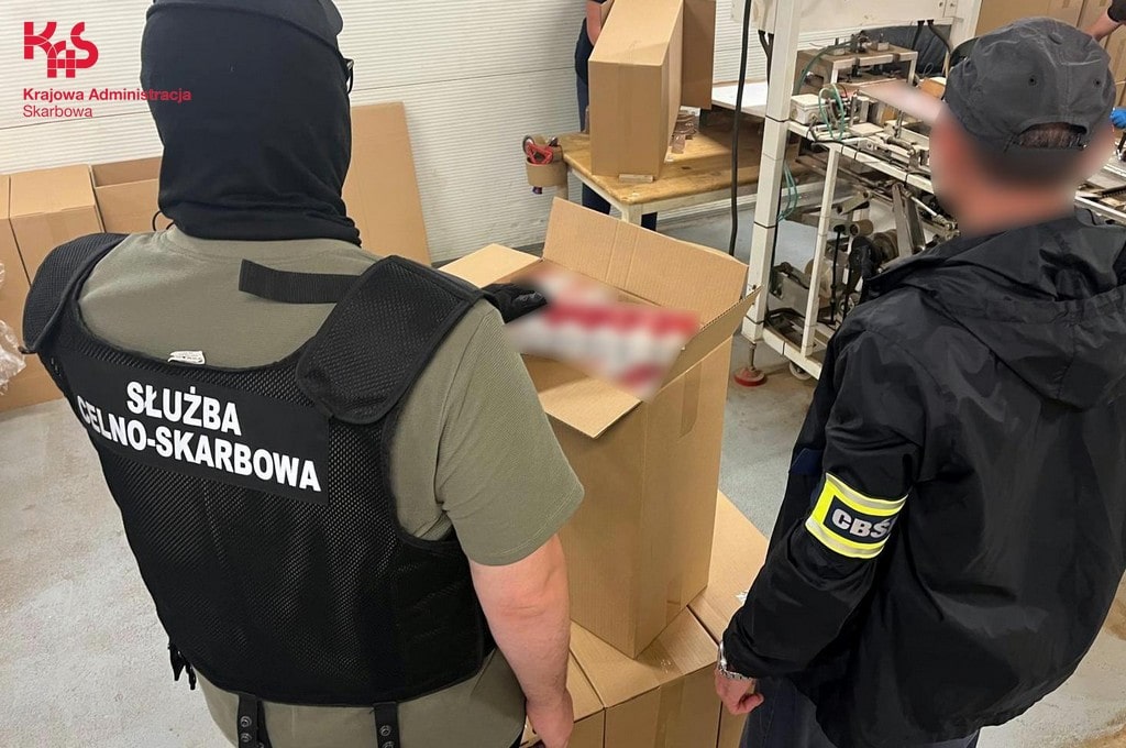 Funkcjonariusze KAS i policjanci CBŚP wkroczyli na dwie posesje, na których były produkowane nielegalne papierosy oraz magazynowany był tytoń bez polskich znaków akcyzy.
