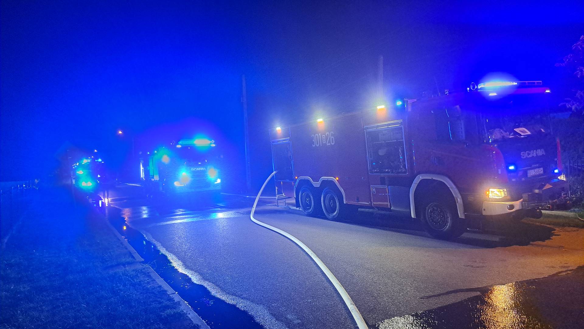 Pierwsze zgłoszenie do strażaków dotarło z Centrum Powiadamiania Ratunkowego dwadzieścia minut po północy. Po przyjeździe pierwszych zastępów potwierdzono informację o pożarze.