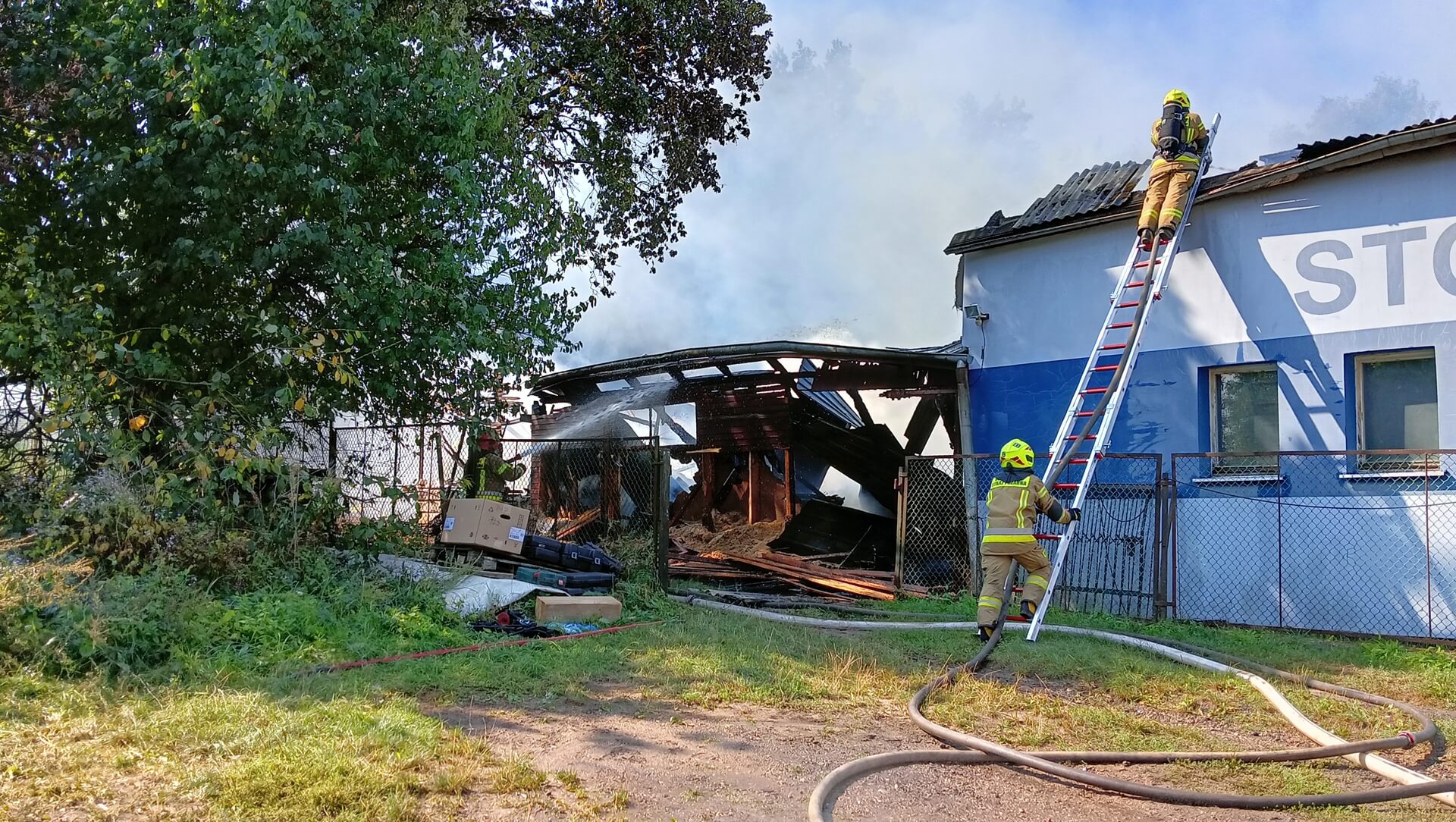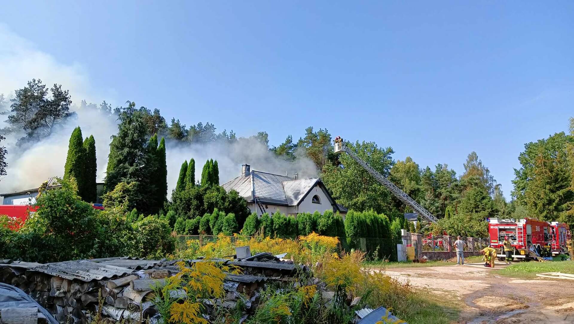 Radio Białystok | Wiadomości | Wiadomości - Strażacy walczyli z pożarem w podbiałostockich Jurowcach - spłonęła stolarnia i część budynku mieszkalnego [zdjęcia, wideo]