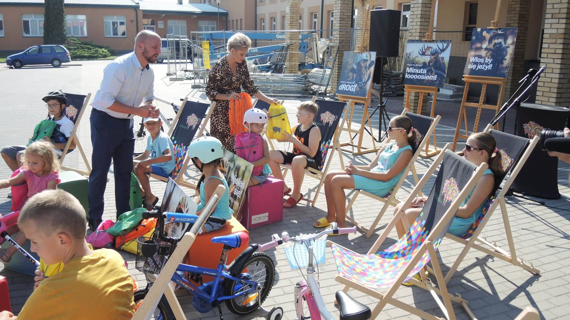 Przed szkołą podstawową nr 5 z gośćmi z województwa spotkali się uczniowie, z których wielu przyjechało rowerami i hulajnogami, a także ich rodzice.