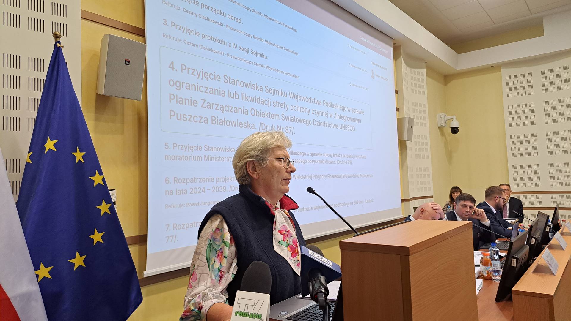Podlascy radni opowiedzieli się przeciwko planom zmniejszenia terenów gospodarczych Puszczy Białowieskiej. Z wnioskiem o przyjęcie stanowiska w tej sprawie wystąpił opozycyjny klub PiS. Radni przyjęli stanowisko po poprawkach komisji rolnictwa. 23 osoby głosowały za przyjęciem stanowiska, jedna była przeciw.