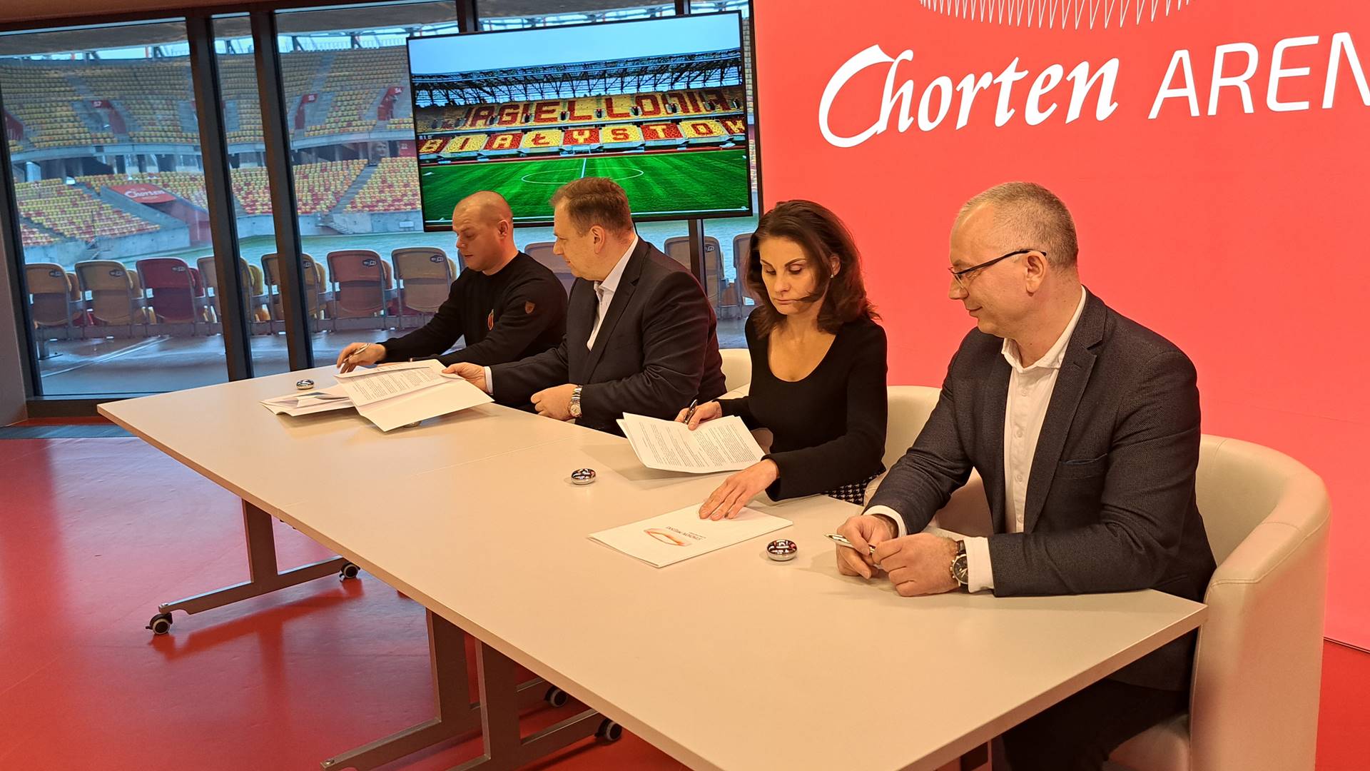 Władze spółki zarządzającej stadionem, klubu i kibicowskiego stowarzyszenia "Dzieci Białegostoku" podpisały w czwartek (9.01) list intencyjny w sprawie napisu "Jagiellonia Białystok. Z taką inicjatywą wyszli fani żółto-czerwonych. Napis miałby powstać w ramach projektu do budżetu obywatelskiego na przyszły rok.