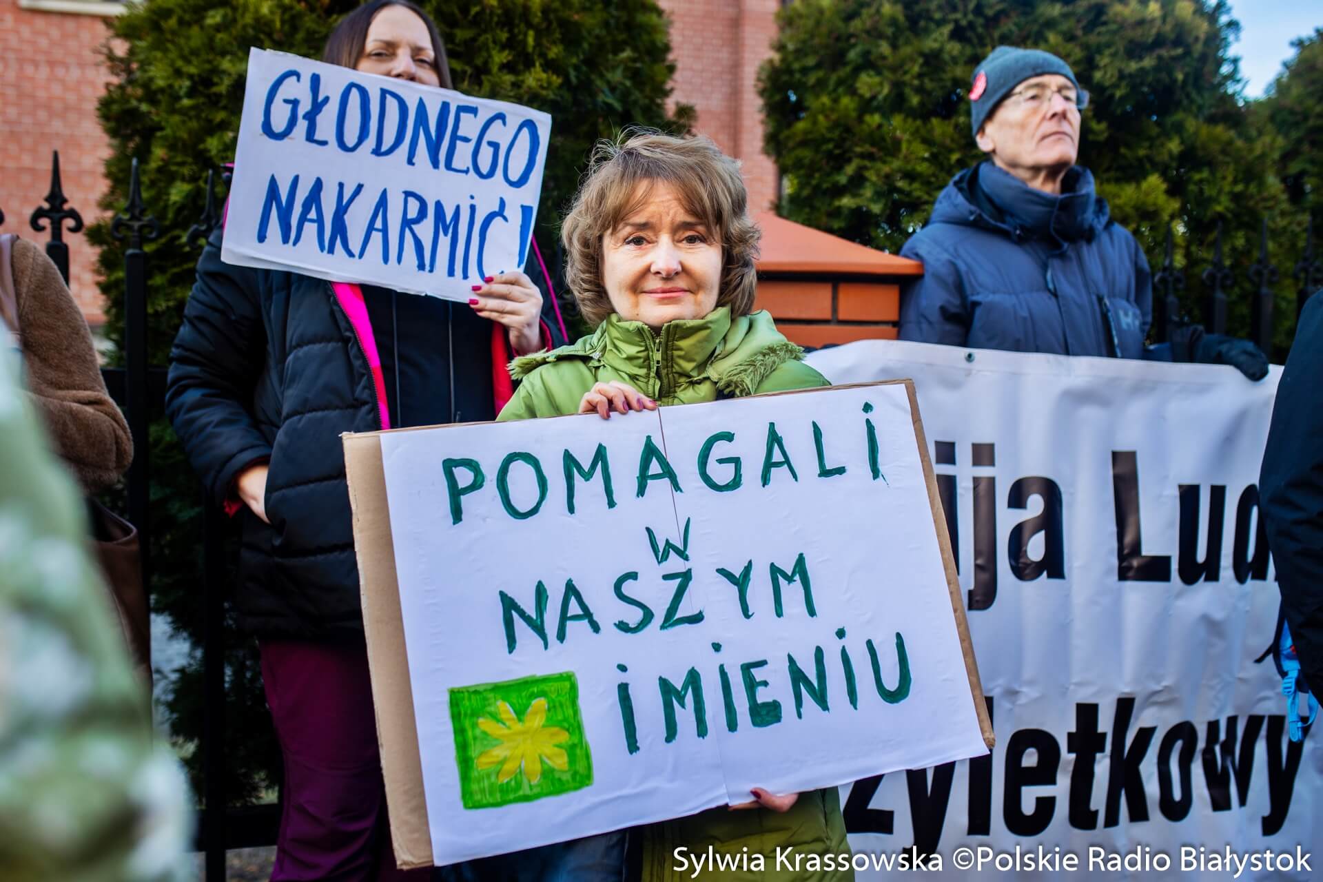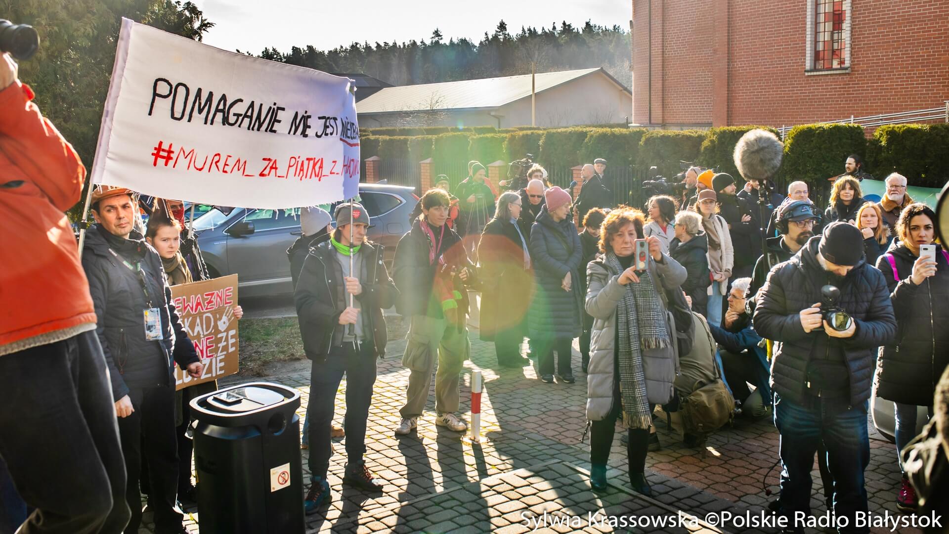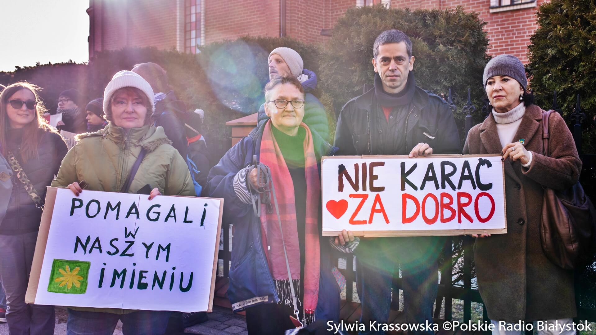 Zanim rozpoczął się proces, przed sądem w Hajnówce zebrała się spora grupa osób, które przyjechały z różnych stron Polski. Mają ze sobą transparenty "Głodnego nakarmić" czy "Nie karać za dobro".