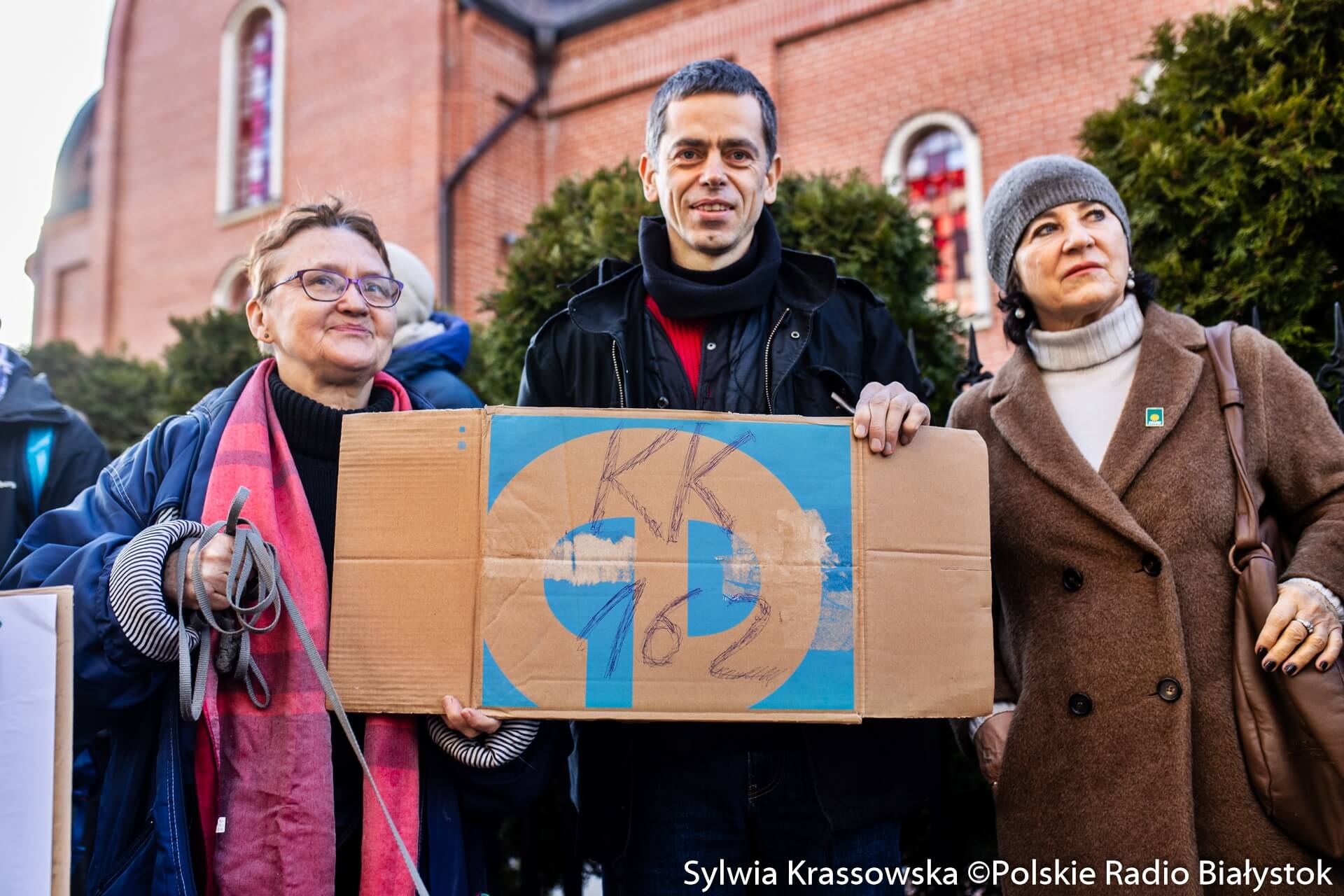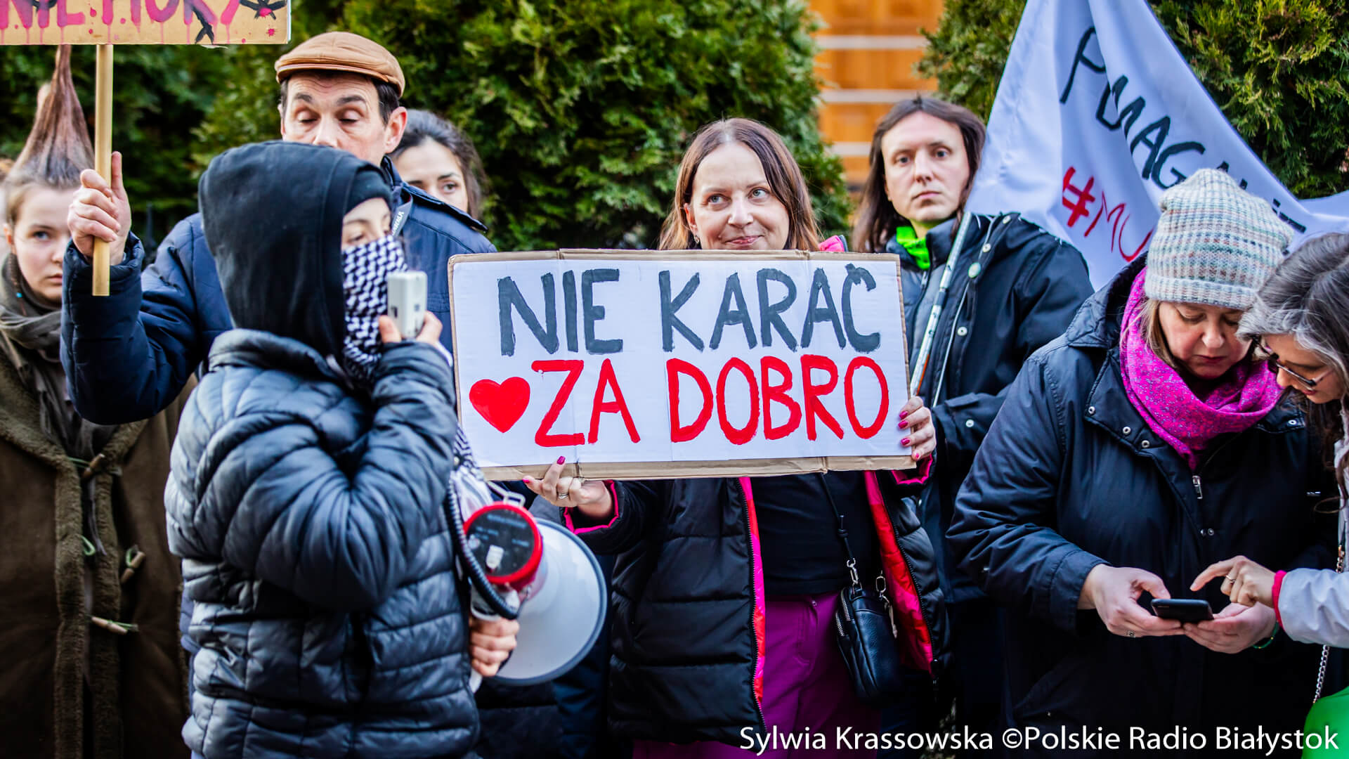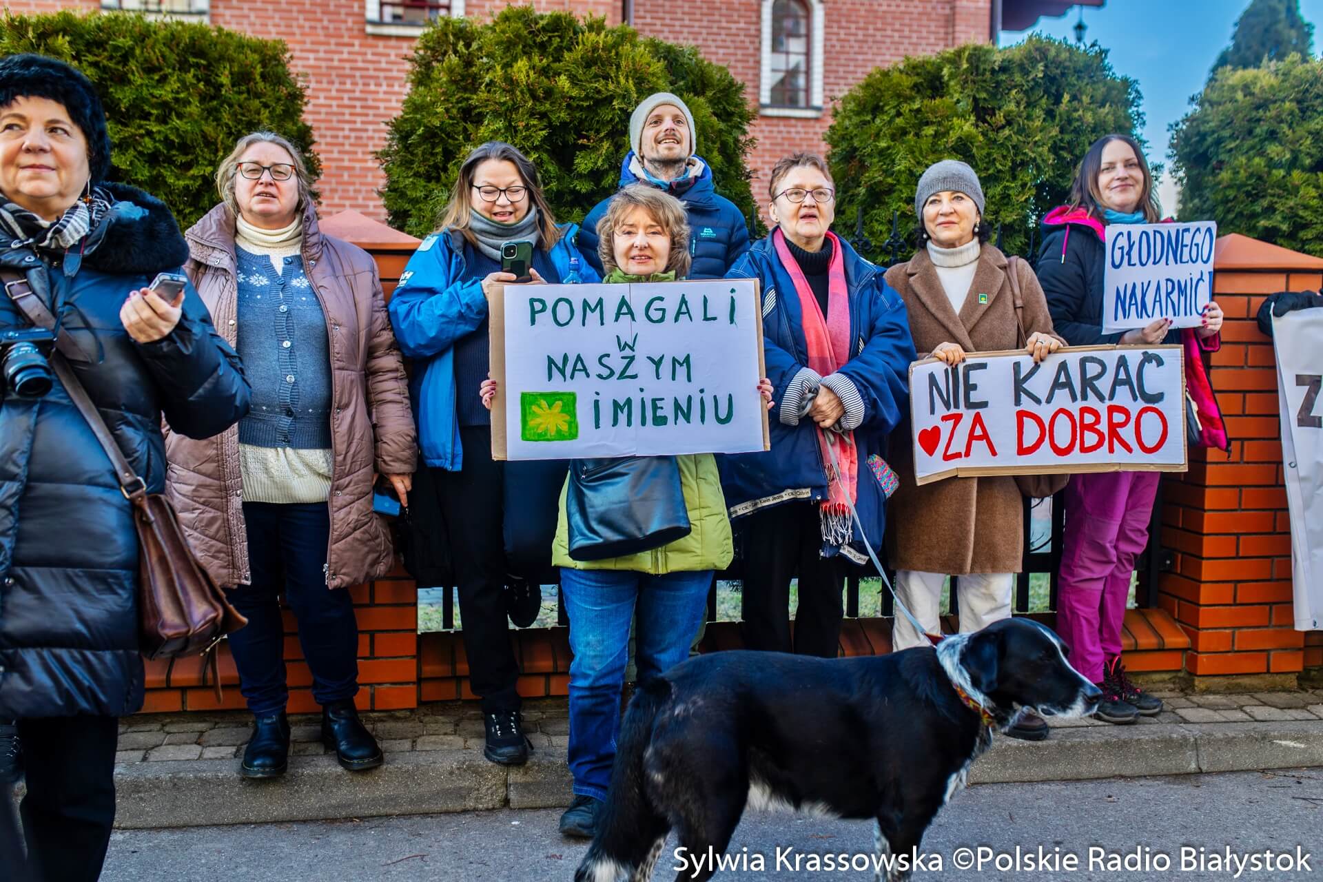 Zanim rozpoczął się proces, przed sądem w Hajnówce zebrała się spora grupa osób, które przyjechały z różnych stron Polski. Mają ze sobą transparenty "Głodnego nakarmić" czy "Nie karać za dobro".