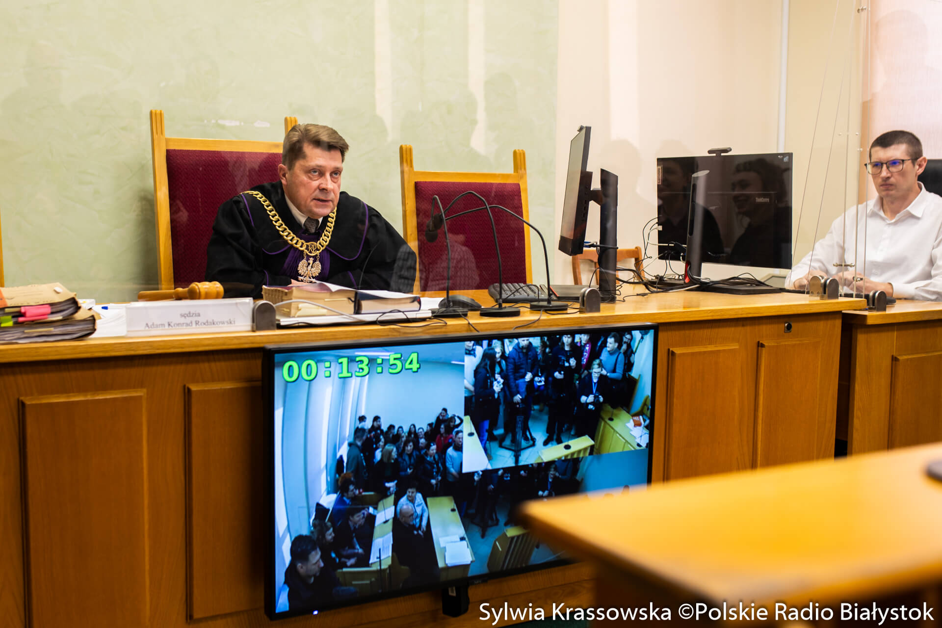 Zanim sąd otworzył przewód sądowy, najpierw przeprowadził losowanie przedstawicieli mediów, którzy mogą przebywać na sali rozpraw. Sąd uznał, że ze względu na duże zainteresowanie dziennikarzy prasy, radia, telewizji i mediów internetowych i rozmiary sali, nie wszyscy przedstawiciele ok. 20 redakcji mogliby się na niej zmieścić.
